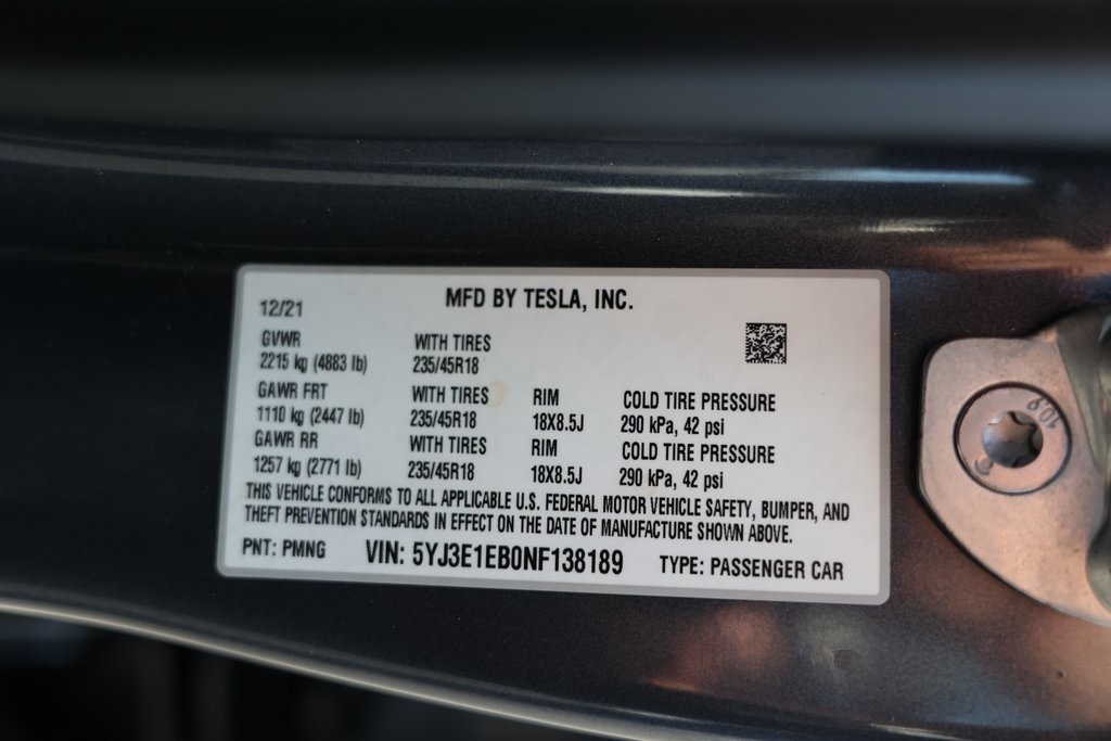 Model 3 Long Range, 4D Sedan, Electric Motor, 1-Speed Automatic, AWD, Alloy wheels, Heated front seats, Heated rear seats, Navigation System, Rain sensing wipers.134/126 City/Highway MPG