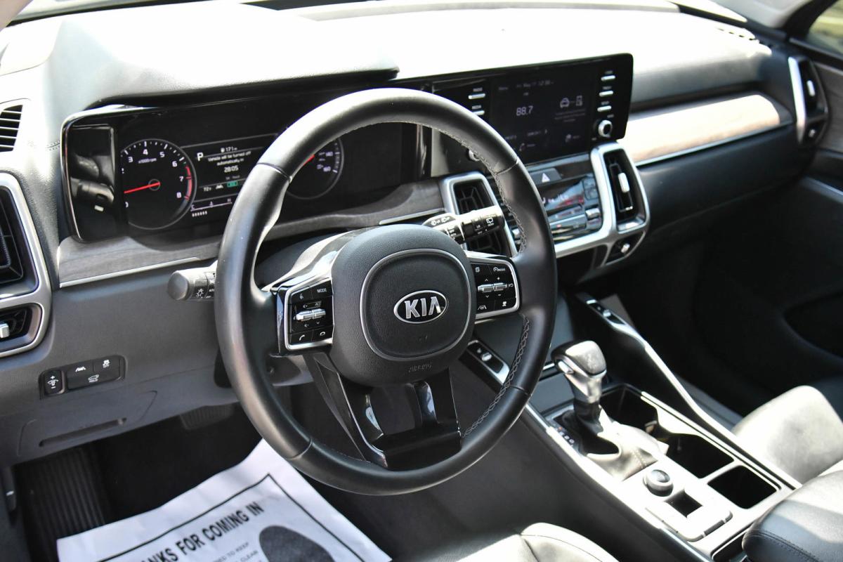 Scores 28 Highway MPG and 21 City MPG! This Kia Sorento delivers a Intercooled Turbo Regular Unleaded I-4 2.5 L/152 engine powering this Automatic transmission. EVERLASTING SILVER, CARPETED FLOOR MATS, BLACK, PREMIUM LEATHERETTE SEAT TRIM.*This Kia Sorento Features the Following Options *Wheels: 18 Machine-Finished Alloy -inc: gloss black pockets, Variable Intermittent Wipers, Trunk/Hatch Auto-Latch, Trip Computer, Transmission: 8-Speed DCT, Transmission w/Driver Selectable Mode and Sportmatic Sequential Shift Control, Tires: 235/60R18, Tire Specific Low Tire Pressure Warning, Tire mobility kit, Tailgate/Rear Door Lock Included w/Power Door Locks.