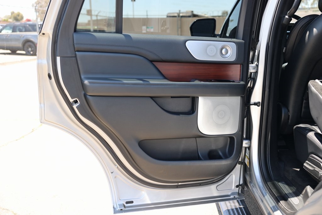 Silver Radiance 2021 Lincoln Navigator Reserve RWD 10-Speed Automatic V6 Ebony w/Lincoln Soft Touch Heated/Ventilated Comfort Seats, 14 Speakers, 3rd row seats: split-bench, Air Conditioning, Cargo Convenience Package, Chrome Roof Rack w/Black Crossbars, Equipment Group 201A Reserve I, Exterior Parking Camera Rear, Fully automatic headlights, GVWR: 7,350 lbs Payload Package, Head restraints memory, Heated front seats, Heated rear seats, Luxury Package, Memory seat, Navigation System, Pedal memory, Perfect Position Seats (30-Way) w/Active Motion, Power Liftgate, Power moonroof: Panoramic Vista Roof, Premium Lthr Htd/Ventilated Perfect Position Seats, Rear air conditioning, Revel Ultima Audio System w/20-Speakers, SYNC 3 Communications & Entertainment System, Ventilated front seats, Voice-Activated Touchscreen Navigation System, Wheels: 22" 12-Spoke Bright Machined Aluminum.Recent Arrival!
