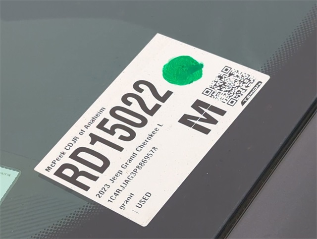 Certified. 19/26 City/Highway MPG Clean CARFAX. CARFAX One-Owner. INTERIOR & EXTERIOR PROFESSIONALLY DETAILED FOR DELIVERY, MCPEEK CHRYSLER DODGE JEEP RAM FAMILY OWNED AND OPERATED SINCE 1961 !!!!!.Baltic Gray Metallic Clearcoat 2023 Jeep Grand Cherokee L Altitude RWD 8-Speed AutomaticFCA US LLC Certified Pre-Owned Details: * Warranty Deductible: $100 * Transferable Warranty * Limited Warranty: 3 Month/3,000 Mile (whichever comes first) after new car warranty expires or from certified purchase date * Includes First Day Rental, Car Rental Allowance, and Trip Interruption Benefits. SiriusXM 3 month trial subscription * Powertrain Limited Warranty: 84 Month/100,000 Mile (whichever comes first) from original in-service date * 125 Point Inspection * Roadside Assistance * Vehicle HistoryReceive Free lube and oil filter changes for up to 45,000 miles for 3 years!!! McPeek's Dodge of Anahiem 1221 S. Auto Center Drive Anahiem, CA 92806 714-262-4902.