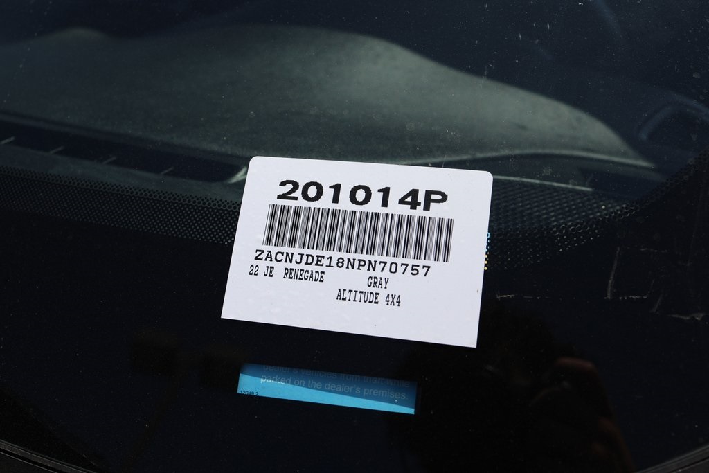 Priced below KBB Fair Purchase Price!Renegade Latitude, 4D Sport Utility, 1.3L I4, 9-Speed 948TE Automatic, 4WD, 6 Speakers, Black Accent Stitching, Black Headliner, Deluxe Cloth High-Back Bucket Seats, Front dual zone A/C, Front fog lights, Gloss Black Exterior Accents, Gloss Black Steering Wheel Bezel, Knee airbag, Low tire pressure warning, Navigation System, ParkView Rear Back-Up Camera, Quick Order Package 22M Altitude, Remote keyless entry, Roof rack: rails only, Wheels: 18" x 8.0" Gloss Black.CARFAX One-Owner.