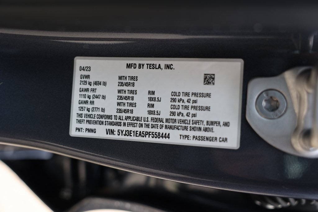 Midnight Silver Metallic 2023 Tesla Model 3 RWD 1-Speed Automatic Electric Motor 8 Speakers, Air Conditioning, Electronic Stability Control, Exterior Parking Camera Rear, Fully automatic headlights, Heated Front Bucket Seats, Lane Departure Warning System, Memory seat, Navigation System, Radio: Upgraded Audio System, Security system, Wheels: 18" x 8.5" Aero.Recent Arrival! 138/126 City/Highway MPG