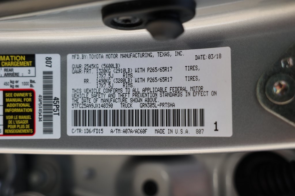 Silver Sky Metallic 2018 Toyota Tacoma TRD Sport V6 4WD 6-Speed Automatic 3.5L V6 PDI DOHC 24V LEV3-ULEV70 278hp 4WD, Air Conditioning, Brake assist, Electronic Stability Control, Entune App Suite, Exterior Parking Camera Rear, Front Bucket Seats, Front fog lights, LED Daytime Running Lamps, Navigation System, Radio: Entune Premium w/AM/FM/CD/Nav/App Suite, Wheels: 17" x 7.5" Machined Alloy.Recent Arrival!Awards: * 2018 KBB.com Best Resale Value Awards * 2018 KBB.com 5-Year Cost to Own Awards * 2018 KBB.com 10 Most Awarded Brands