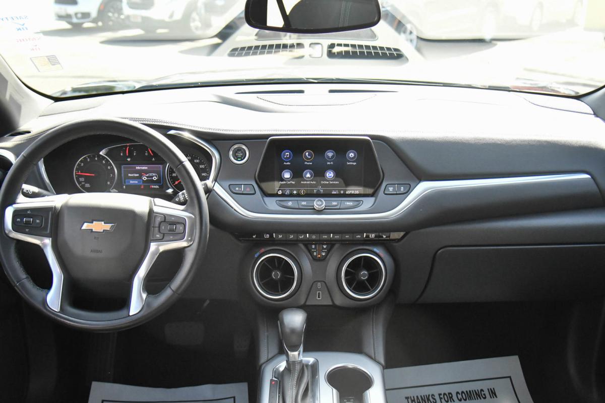 Scores 27 Highway MPG and 21 City MPG! This Chevrolet Blazer boasts a Gas I4 2.0L/ engine powering this Automatic transmission. WHEELS, 18 (45.7 CM) BRIGHT SILVER ALUMINUM (STD), UNIVERSAL HOME REMOTE includes garage door opener, programmable, TRANSMISSION, 9-SPEED AUTOMATIC, ELECTRONICALLY-CONTROLLED with overdrive, includes Driver Shift Control (STD).*This Chevrolet Blazer Features the Following Options *LPO, INTERIOR PROTECTION PACKAGE includes (VAV) premium all-weather floor mats, LPO and (VLI) cargo mat, LPO, LPO, CARGO PACKAGE includes (VRS) retractable cargo shade, LPO and (W2D) vertical cargo net, LPO, LICENSE PLATE FRONT MOUNTING PACKAGE (will be forced on orders with ship-to states that require a front license plate), CONVENIENCE AND DRIVER CONFIDENCE PACKAGE includes (BTV) Remote Start, (KA1) driver and front passenger heated seats, (UG1) Universal Home Remote, (TB5) power programmable liftgate, (V59) roof-mounted side rails, (UKC) Lane Change Alert with Side Blind Zone Alert, (UFG) Rear Cross Traffic Alert, (UD7) Rear Park Assist, (DD8) auto-dimming inside rearview mirror and (DM8) auto-dimming outside heated power-adjustable manual-folding body-color mirrors with turn signal indicators , TIRES, P235/65R18 ALL-SEASON BLACKWALL (STD), SEATS, HEATED DRIVER AND FRONT PASSENGER, SEATS, FRONT BUCKETS (STD), ROOF RAILS, BLACK, REMOTE START, REAR PARK ASSIST WITH AUDIBLE WARNING.