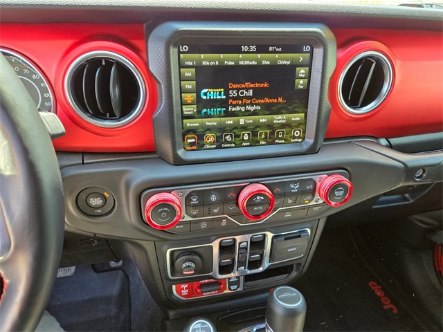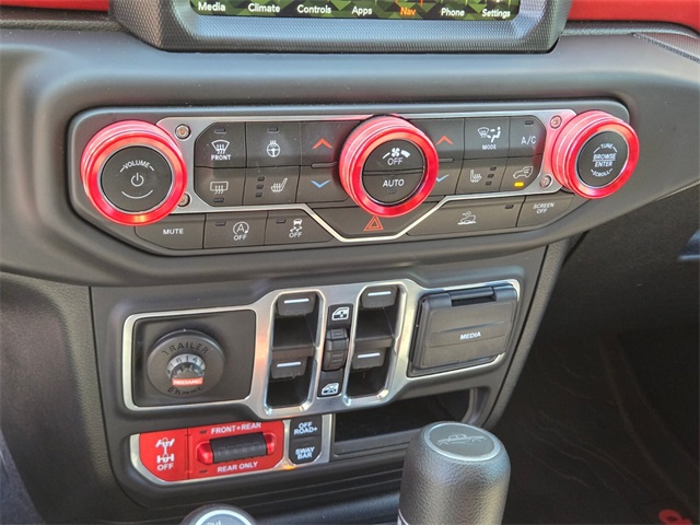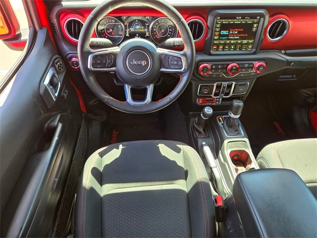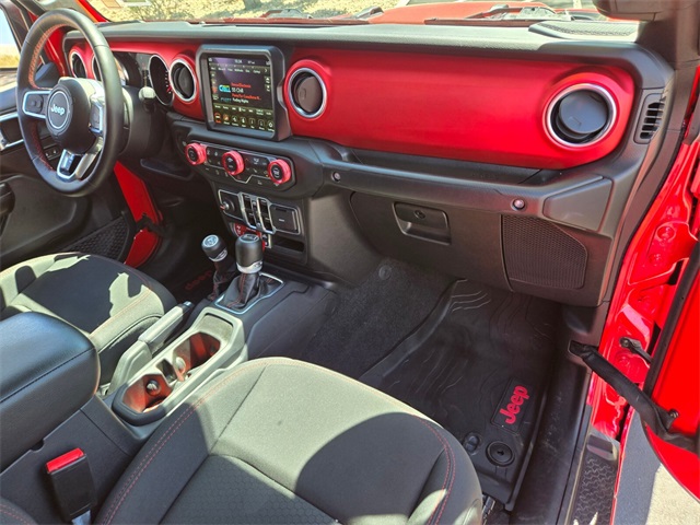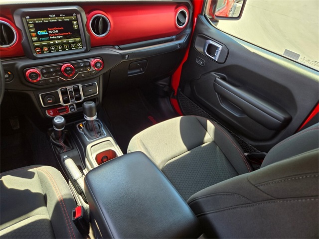 Priced below KBB Fair Purchase Price!Odometer is 10275 miles below market average!Firecracker Red Clearcoat 2021 Jeep Gladiator Rubicon 4WD 8-Speed Automatic 3.6L V6 24V VVTIf you don't drive here, you can't save here!Awards: * JD Power Initial Quality Study (IQS)Price may not include recon fee. 8.4" Radio & Premium Audio Group (5-Year SiriusXM Traffic Service, 5-Year SiriusXM Travel Link Service, Alpine Premium Audio System, Emergency/Assistance Call, For Details, Visit DriveUconnect.com, HD Radio, and Radio: Uconnect 4C Nav w/8.4" Display), Cold Weather Group, GVWR: 6,250 lbs w/Max Tow Package, Quick Order Package 24R, Trailer Tow Package (240 Amp Alternator), 4-Wheel Disc Brakes, 4.10 Rear Axle Ratio, 8 Speakers, 97 mph Maximum Speed Calibration, ABS brakes, Air Conditioning, Alloy wheels, AM/FM radio: SiriusXM, Apple CarPlay/Android Auto, Automatic temperature control, Black 3-Piece Hard Top, Brake assist, Compass, Delay-off headlights, Driver door bin, Driver vanity mirror, Dual front impact airbags, Dual front side impact airbags, Electronic Stability Control, Front anti-roll bar, Front Bucket Seats, Front Center Armrest w/Storage, Front dual zone A/C, Front fog lights, Front License Plate Bracket, Front reading lights, Fully automatic headlights, Garage door transmitter, Heated door mirrors, Illuminated entry, Integrated roll-over protection, Leather steering wheel, Low tire pressure warning, Manufacturer's Statement of Origin, MOPAR Hardtop Headliner, MOPAR Spray In Bedliner, Occupant sensing airbag, Outside temperature display, Panic alarm, ParkView Rear Back-Up Camera, Passenger door bin, Passenger vanity mirror, Performance Suspension, Power door mirrors, Power steering, Power windows, Premium Cloth Low-Back Bucket Seats, Radio data system, Radio: Uconnect 4 w/7" Display, Rear anti-roll bar, Rear reading lights, Rear Window Defroster, Redical Instrument Panel Bezels, Remote keyless entry, Remote Proximity Keyless Entry, Remote Start System, Security system, Speed control, Split folding rear seat, Steering wheel mounted audio controls, Tachometer, Telescoping steering wheel, Tilt steering wheel, Traction control, Trip computer, Variably intermittent wipers, Voltmeter, and Wheels: 17" x 7.5" Granite Crystal AluminuM.