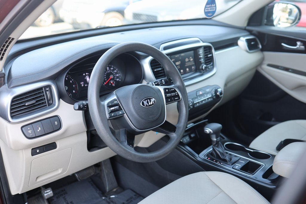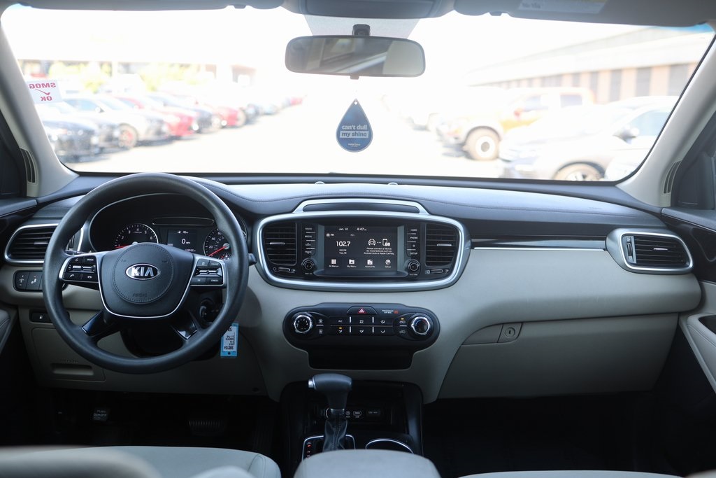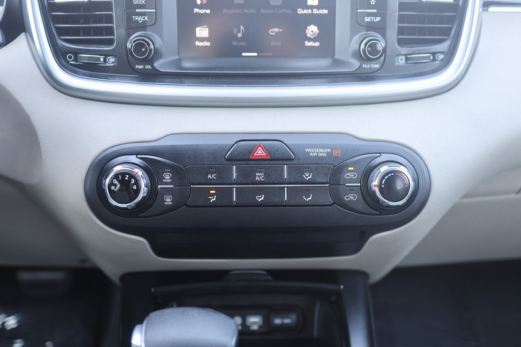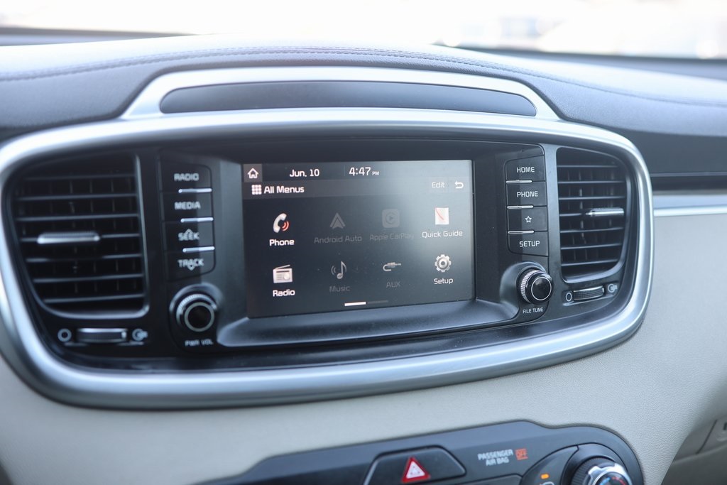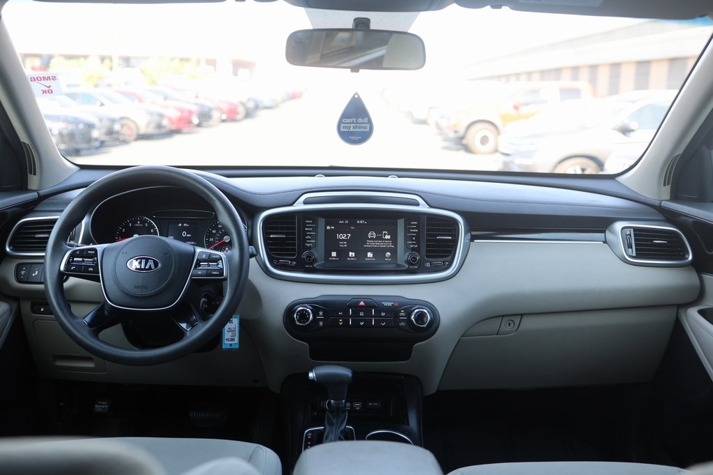 Sorento LX, 4D Sport Utility, I4, 6-Speed Automatic with Sportmatic, FWD, Stone Beige Cloth, 3rd row seats: split-bench, Alloy wheels, Apple CarPlay & Android Auto, Exterior Parking Camera Rear, Fully automatic headlights, Low tire pressure warning, Overhead airbag, Radio: UVO Play w/AM/FM/MP3, Remote keyless entry, Spoiler.22/29 City/Highway MPG