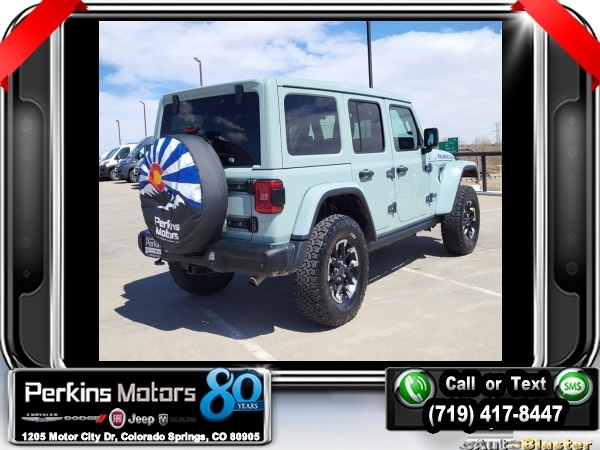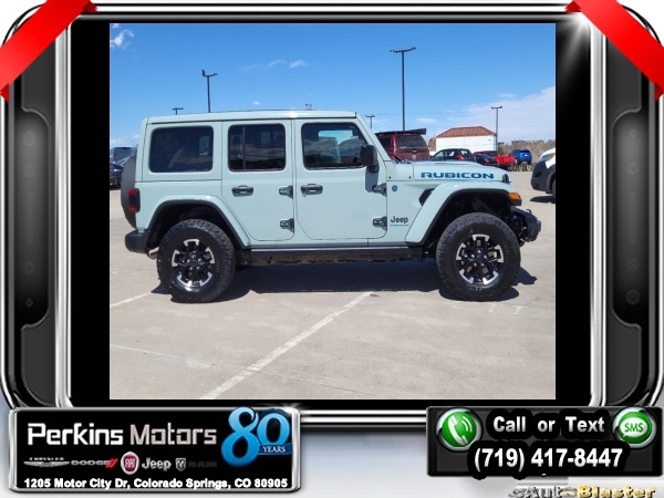 Earl Clearcoat 4WD 2.0L I4 DOHC 8-Speed Automatic<br><br>2.0L I4 DOHC.<br><br><br>CARFAX One-Owner. Clean CARFAX.<br><br>Check us out at www.perkinsmotors.com to see our specials! Since opening our doors in 1944, we’ve been proud to serve Colorado Springs, CO, and the surrounding areas of Pueblo, Castle Rock and Denver, CO. Throughout this time of being family owned for 80 years, we’ve maintained a firm commitment to our customers: to offer a wide selection of New Chrysler, Dodge, Fiat, Jeep, and Ram vehicles and quality pre-owned vehicles, and provide a quick, no-hassle car-buying process that ensures everyone drives off the lot satisfied with their purchase.<br><br><br>Quick Order Package 29Y Rubicon X (12.3 Touchscreen Display, 4G LTE Wi-Fi Hot Spot, Acoustic Front Seat Area Carpet, Acoustic Laminated Front Door Glass, Alpine Premium Audio System, Apple CarPlay, Auto High Beam Headlamp Control, Auto-Dimming Rear-View Mirror, Blind Spot & Cross Path Detection, Body Color 3-Piece Hard Top, Connected Travel & Traffic Services, Connectivity - US/Canada, Disassociated Touchscreen Display, Freedom Panel Storage Bag, Google Android Auto, GPS Navigation, HD Radio, Heated Front Seats, Heated Steering Wheel, Integrated Center Stack Radio, Integrated Off-Road Camera, Integrated Voice Command w/Bluetooth, Leather Wrapped Park Brake Handle, Leather Wrapped Shift Knob, MOPAR Hardtop Headliner, Nappa Leather Seats, No Soft Top, ParkSense Rear Park Assist System, Power 4-Way Driver Lumbar Adjust, Power 4-Way Passenger Lumbar Adjust, Power Adjust 8-Way Driver Seat, Power Adjust 8-Way Front Passenger Seat, Premium Door Trim Panel, Radio: Uconnect 5 Nav w/12.3 Display, Rear Window Defroster, Rear Window Wiper/Washer, Remote Start System, SiriusXM Radio Service, SiriusXM w/360L, Steel Front Bumper, Steel Rear Bumper, and Universal Garage Door Opener), Trailer Tow Prep Package (7 & 4 Pin Wiring Harness and 700 Amp Maintenance Free Battery), 2.0L I4 DOHC, 4-Wheel Disc Brakes, 4.10 Rear Axle Ratio, 8 Speakers, ABS brakes, Air Conditioning, Alloy wheels, AM/FM radio: SiriusXM, Apple CarPlay/Android Auto, Automatic temperature control, Body Color Rubicon Highline Flare (DISC), Brake assist, Compass, Cruise Control, Delay-off headlights, Driver door bin, Driver vanity mirror, Dual front impact airbags, Dual front side impact airbags, Electronic Stability Control, Front anti-roll bar, Front Bucket Seats, Front Center Armrest w/Storage, Front dual zone A/C, Front fog lights, Front License Plate Bracket, Front reading lights, Fully automatic headlights, Garage door transmitter, Heated door mirrors, Illuminated entry, Integrated roll-over protection, Low tire pressure warning, MOPAR All-Weather Floor Mats, Occupant sensing airbag, Outside temperature display, Overhead airbag, Panic alarm, ParkView Rear Back-Up Camera, Passenger door bin, Passenger vanity mirror, Performance Suspension, Power door mirrors, Power steering, Power Top Quarter Window Storage Bag, Power windows, Radio data system, Radio: Uconnect 5 w/12.3 Display, Rear anti-roll bar, Rear reading lights, Remote keyless entry, Removable Rear Quarter Windows, Security system, Sky 1-Touch Power Top, Split folding rear seat, Steering wheel mounted audio controls, Sustainable Premium Cloth Seats, Tachometer, Telescoping steering wheel, Tilt steering wheel, Traction control, Trip computer, Variably intermittent wipers, Voltmeter, and Wheels: 17 x 7.5 Machined w/Black Pockets.