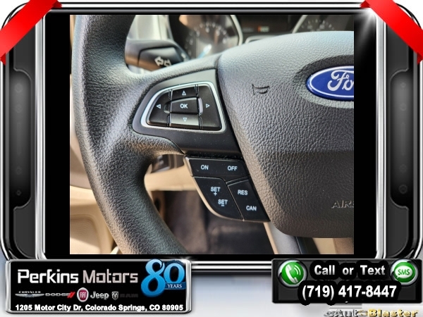 White Gold Metallic FWD EcoBoost 1.0L I3 GTDi DOHC Turbocharged VCT 6-Speed Automatic<br><br><br>Check us out at www.perkinsmotors.com to see our specials! Since opening our doors in 1944, we’ve been proud to serve Colorado Springs, CO, and the surrounding areas of Pueblo, Castle Rock and Denver, CO. Throughout this time of being family owned for 80 years, we’ve maintained a firm commitment to our customers: to offer a wide selection of New Chrysler, Dodge, Fiat, Jeep, and Ram vehicles and quality pre-owned vehicles, and provide a quick, no-hassle car-buying process that ensures everyone drives off the lot satisfied with their purchase.<br><br><br>Awards:<br> * 2018 KBB.com Brand Image Awards * 2018 KBB.com 10 Most Awarded Brands<br><br>Equipment Group 200A, 6 Speakers, ABS brakes, Air Conditioning, Alloy wheels, AM/FM radio: SiriusXM, Brake assist, Bumpers: body-color, Cloth Front Bucket Seats, Compass, Cruise Control, Delay-off headlights, Driver door bin, Driver vanity mirror, Dual front impact airbags, Dual front side impact airbags, Electronic Stability Control, Emergency communication system, Exterior Parking Camera Rear, Four wheel independent suspension, Front anti-roll bar, Front Bucket Seats, Front Center Armrest, Front reading lights, Fully automatic headlights, Illuminated entry, Knee airbag, Low tire pressure warning, Occupant sensing airbag, Outside temperature display, Overhead airbag, Overhead console, Panic alarm, Passenger door bin, Passenger vanity mirror, Power door mirrors, Power steering, Power windows, Radio data system, Radio: AM/FM/MP3-Capable, Rear anti-roll bar, Rear window defroster, Remote keyless entry, Split folding rear seat, Steering wheel mounted audio controls, SYNC Communications & Entertainment System, Tachometer, Telescoping steering wheel, Tilt steering wheel, Traction control, Trip computer, Variably intermittent wipers, and Wheels: 16 Sparkle Silver Painted Aluminum.