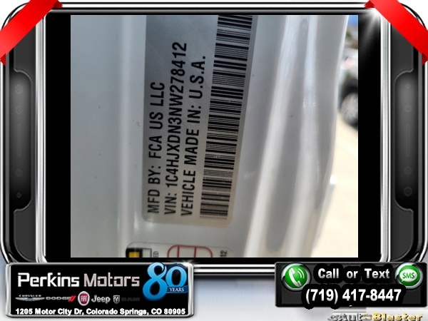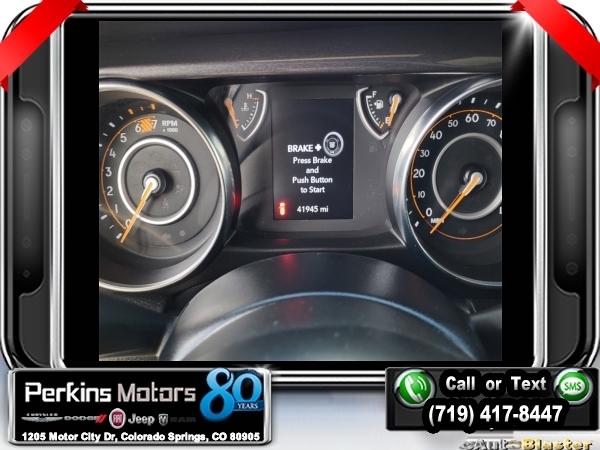 Bright White Clearcoat 4WD 2.0L I4 DOHC 8-Speed Automatic<br><br><br>Certified. FCA US LLC Certified Pre-Owned Details:<br><br> * Warranty Deductible: $100<br> * Limited Warranty: 3 Month/3,000 Mile (whichever comes first) after new car warranty expires or from certified purchase date<br> * 125 Point Inspection<br> * Roadside Assistance<br> * Vehicle History<br> * Powertrain Limited Warranty: 84 Month/100,000 Mile (whichever comes first) from original in-service date<br> * Transferable Warranty<br> * Includes First Day Rental, Car Rental Allowance, and Trip Interruption Benefits. SiriusXM 3 month trial subscription<br><br><br>CARFAX One-Owner. Clean CARFAX.<br><br>Check us out at www.perkinsmotors.com to see our specials! Since opening our doors in 1944, we’ve been proud to serve Colorado Springs, CO, and the surrounding areas of Pueblo, Castle Rock and Denver, CO. Throughout this time of being family owned for 80 years, we’ve maintained a firm commitment to our customers: to offer a wide selection of New Chrysler, Dodge, Fiat, Jeep, and Ram vehicles and quality pre-owned vehicles, and provide a quick, no-hassle car-buying process that ensures everyone drives off the lot satisfied with their purchase.<br><br><br>Quick Order Package 22L Altitude (110 MPH Vehicle Max Speed Calibration, Black Interior Accents, Black Trail Rated Badge, Body Color Grille w/Gloss Black Rings, Bridgestone Brand Tires, Front 1-Touch Down Power Windows, Leather Wrapped Steering Wheel, Matte Black Jeep Badge, MOPAR Hardtop Headliner, Power Heated Mirrors, Remote Keyless Entry, Security Alarm, Speed Sensitive Power Locks, Sun Visors w/Illuminated Vanity Mirrors, Wheels: 18 x 7.5 Gloss Black Aluminum, and Wizard Black Instrument Panel Bezels), FCA US LLC Certified Pre-Owned Certified, 3.45 Rear Axle Ratio, 4-Wheel Disc Brakes, 8 Speakers, ABS brakes, Air Conditioning, AM/FM radio, Apple CarPlay/Android Auto, Aux Battery, Brake assist, Cloth Low-Back Bucket Seats, Compass, Cruise Control, Delay-off headlights, Driver door bin, Driver vanity mirror, Dual front impact airbags, Dual front side impact airbags, Electronic Stability Control, Emergency communication system: SiriusXM Guardian, Engine Oil Cooler, Front anti-roll bar, Front Bucket Seats, Front Center Armrest w/Storage, Front fog lights, Front reading lights, Integrated roll-over protection, Low tire pressure warning, Manufacturer's Statement of Origin, Non-Lock Fuel Cap w/o Discriminator, Normal Duty Suspension, Occupant sensing airbag, Outside temperature display, ParkView Rear Back-Up Camera, Passenger door bin, Passenger vanity mirror, Power steering, Radio data system, Radio: Uconnect 4 w/7 Display, Rear anti-roll bar, Rear reading lights, Split folding rear seat, Steering wheel mounted audio controls, Stop-Start Dual Battery System, Tachometer, Telescoping steering wheel, Tilt steering wheel, Traction control, Trip computer, Variably intermittent wipers, and Wheels: 17 x 7.5 Black Steel Styled.