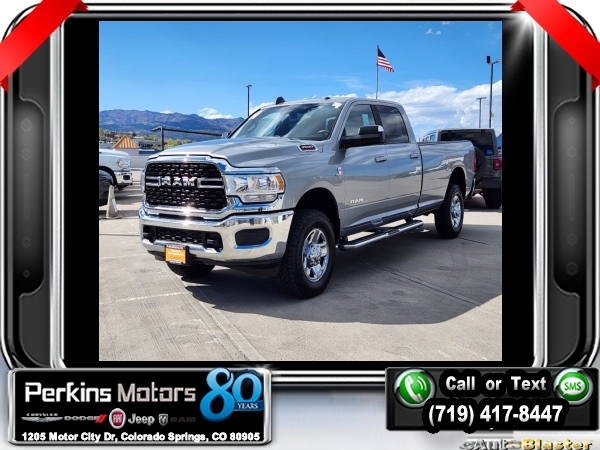 Billet Silver Metallic Clearcoat 4WD I6 6-Speed Automatic<br><br><br>CARFAX One-Owner. Clean CARFAX.<br><br>Check us out at www.perkinsmotors.com to see our specials! Since opening our doors in 1944, we’ve been proud to serve Colorado Springs, CO, and the surrounding areas of Pueblo, Castle Rock and Denver, CO. Throughout this time of being family owned for 80 years, we’ve maintained a firm commitment to our customers: to offer a wide selection of New Chrysler, Dodge, Fiat, Jeep, and Ram vehicles and quality pre-owned vehicles, and provide a quick, no-hassle car-buying process that ensures everyone drives off the lot satisfied with their purchase.<br><br><br>Quick Order Package 2HZ Big Horn, 2 Way Rear Headrest Seat, 3.73 Axle Ratio, 4 Way Front Headrests, 4-Wheel Disc Brakes, 40/20/40 Split Bench Seat, 4G LTE Wi-Fi Hot Spot, 5th Wheel/Gooseneck Towing Prep Group, 6 Speakers, 8.4 Touchscreen Display, ABS brakes, Active Noise Control System, Air Conditioning, AM/FM radio: SiriusXM, Apple CarPlay, Apple CarPlay/Android Auto, Bluetooth Handsfree Phone & Audio, Brake assist, Bumpers: chrome, Center Hub, Center Stack Storage Drawer, Chrome Flat Cab-Length Side Steps, Cloth 40/20/40 Bench Seat, Compass, Connectivity - US/Canada, Cruise Control, Delay-off headlights, Driver door bin, Dual front impact airbags, Dual front side impact airbags, Electronic Stability Control, Electronically Controlled Throttle, For More Info, Call 800-643-2112, Front anti-roll bar, Front Armrest w/Cupholders, Front Center Armrest w/Storage, Front License Plate Bracket, Front reading lights, Fully automatic headlights, Global Telematics Box Module (TBM), GPS Antenna Input, Heated door mirrors, Illuminated entry, Integrated Voice Command w/Bluetooth, Low tire pressure warning, Manual Adjust 4-Way Driver Seat, Manual Adjust 4-Way Front Passenger Seat, Manufacturer's Statement of Origin, MOPAR Spray In Bedliner, Occupant sensing airbag, Outside temperature display, Overhead airbag, Overhead console, Panic alarm, ParkView Rear Back-Up Camera, Passenger door bin, Passenger vanity mirror, Power door mirrors, Power steering, Power windows, Radio data system, Radio: Uconnect 5 w/8.4 Display, Rear Folding Seat, Rear seat center armrest, Rear step bumper, Remote keyless entry, Selectable Tire Fill Alert, SiriusXM Radio Service, SiriusXM Satellite Radio, Storage Tray, Tachometer, Tilt steering wheel, Tip Start, Traction control, Trip computer, Turn signal indicator mirrors, Variably intermittent wipers, Voltmeter, and Wheels: 18 x 8.0 Steel Chrome Clad.