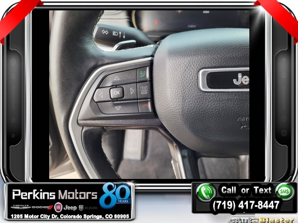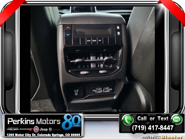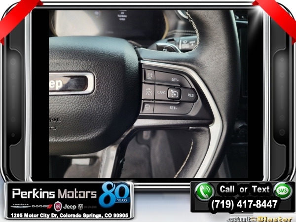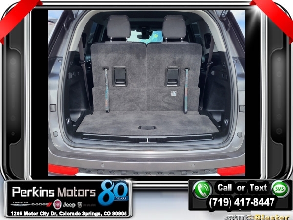 Baltic Gray Metallic Clearcoat 4WD 3.6L V6 24V VVT 8-Speed Automatic<br><br><br>Certified. FCA US LLC Certified Pre-Owned Details:<br><br> * Limited Warranty: 3 Month/3,000 Mile (whichever comes first) after new car warranty expires or from certified purchase date<br> * 125 Point Inspection<br> * Transferable Warranty<br> * Powertrain Limited Warranty: 84 Month/100,000 Mile (whichever comes first) from original in-service date<br> * Vehicle History<br> * Warranty Deductible: $100<br> * Roadside Assistance<br> * Includes First Day Rental, Car Rental Allowance, and Trip Interruption Benefits. SiriusXM 3 month trial subscription<br><br><br>Clean CARFAX.<br><br>Check us out at www.perkinsmotors.com to see our specials! Since opening our doors in 1944, we’ve been proud to serve Colorado Springs, CO, and the surrounding areas of Pueblo, Castle Rock and Denver, CO. Throughout this time of being family owned for 80 years, we’ve maintained a firm commitment to our customers: to offer a wide selection of New Chrysler, Dodge, Fiat, Jeep, and Ram vehicles and quality pre-owned vehicles, and provide a quick, no-hassle car-buying process that ensures everyone drives off the lot satisfied with their purchase.<br><br><br>Luxury Tech Group I (115V Auxiliary Power Outlet, 3rd Row Charge-Only USB Ports, Heated Front Seats, Heated Steering Wheel, Leather Wrapped Steering Wheel, Power Liftgate, Rain Sensitive Windshield Wipers, Remote Start System, Selectable Tire Fill Alert, and Wireless Charging Pad), Quick Order Package 22A, FCA US LLC Certified Pre-Owned Certified, 3.45 Rear Axle Ratio, 3rd row seats: split-bench, 4-Wheel Disc Brakes, 6 Speakers, ABS brakes, Air Conditioning, Alloy wheels, AM/FM radio, Anti-whiplash front head restraints, Automatic temperature control, Brake assist, Bumpers: body-color, Cloth Seats, Compass, Cruise Control, Delay-off headlights, Driver door bin, Driver vanity mirror, Dual front impact airbags, Dual front side impact airbags, Electronic Stability Control, Emergency communication system, Four wheel independent suspension, Front anti-roll bar, Front Bucket Seats, Front Center Armrest w/Storage, Front dual zone A/C, Front reading lights, Fully automatic headlights, Heated door mirrors, Illuminated entry, Knee airbag, Low tire pressure warning, Manual Fold Seatbacks, Normal Duty Suspension, Occupant sensing airbag, Outside temperature display, Overhead airbag, Overhead console, Panic alarm, ParkView Rear Back-Up Camera, Passenger door bin, Passenger vanity mirror, Power door mirrors, Power driver seat, Power steering, Power Sunroof, Power windows, Radio data system, Radio: Uconnect 5 w/8.4 Display, Rear air conditioning, Rear anti-roll bar, Rear reading lights, Rear window defroster, Rear window wiper, Reclining 3rd row seat, Remote keyless entry, Roof rack: rails only, Security system, Speed-Sensitive Wipers, Split folding rear seat, Spoiler, Steering wheel mounted audio controls, Tachometer, Telescoping steering wheel, Tilt steering wheel, Traction control, Trip computer, Variably intermittent wipers, Voltmeter, and Wheels: 18 x 8.0 Fully Painted Aluminum.