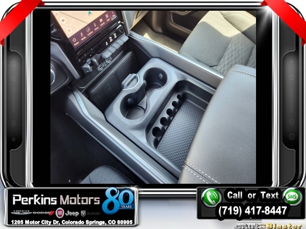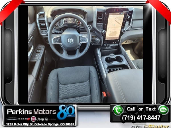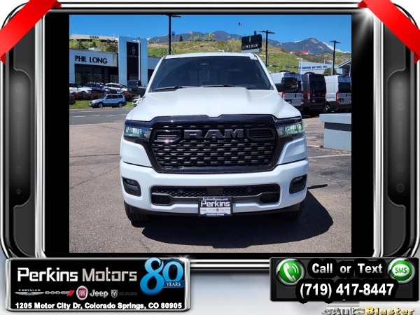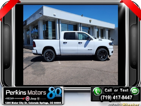 Factory MSRP: $62,270 $4,796 off MSRP! Bright White Clearcoat 2025 Ram 1500 Big Horn/Lone Star 4WD 8-Speed Automatic 3.0L I6<br>SPRAY IN BEDLINER.<br>Check us out at www.perkinsmotors.com to see our specials! Since opening our doors in 1944, we’ve been proud to serve Colorado Springs, CO, and the surrounding areas of Pueblo, Castle Rock and Denver, CO. Throughout this time of being family owned for 80 years, we’ve maintained a firm commitment to our customers: to offer a wide selection of New Chrysler, Dodge, Fiat, Jeep, and Ram vehicles and quality pre-owned vehicles, and provide a quick, no-hassle car-buying process that ensures everyone drives off the lot satisfied with their purchase.<br><br>Big Horn Level 2 Equipment Group (115V Auxiliary Power Outlet, 115V Auxiliary Rear Power Outlet, 12 Touchscreen Display, 2nd Row In Floor Storage Bins, 400W Inverter, 4G LTE Wi-Fi Hot Spot, 9 Amplified Speakers w/Subwoofer, Air Conditioning ATC w/Dual Zone Control, Apple CarPlay, Auto Power-Folding Mirrors, Auto-Dimming Exterior Driver Mirror, Auto-Dimming Rear-View Mirror, Black Exterior Mirrors, Black Premium Power Mirrors, Cluster 7.0 TFT Color Display, Configurable Drive Mode, Connected Travel & Traffic Services, Connectivity - US/Canada, Convex Wide-Angle Exterior Mirror Insert, Exterior Mirrors Courtesy Lamps, Exterior Mirrors w/Heating Element, Exterior Mirrors w/Supplemental Signals, Global Telematics Box Module (TBM), Glove Box Lamp, Google Android Auto, GPS Antenna Input, GPS Navigation, HD Radio, Heated Front Seats, Heated Steering Wheel, Integrated Center Stack Radio, Integrated Voice Command w/Bluetooth, Leather Wrapped Steering Wheel, LED Dome Lamp w/On/Off Switch, LED Footwell Lighting, Media Hub w/2 Charge Only USBs, Overhead LED Lamps, Power 2-Way Driver Lumbar Adjust, Power Adjust 8-Way Driver Seat, Power Adjustable Pedals, Premium Overhead Console, Radio: Uconnect 5 Nav w/12.0 Display, Rear Power Sliding Window, Rear Window Defroster, Remote Tailgate Release, Security Alarm, SiriusXM w/360L, Sun Visors w/Illuminated Vanity Mirrors, Universal Garage Door Opener, and USB Host Flip), Night Edition (3 Rear Seat Head Restraints, 4 Way Front Headrests, Accent Color Door Handles, Accent Color Premium Power Mirrors, Anti-Spin Differential Rear Axle, Black Exterior Truck Badging, Black Headlamp Bezels, Black Interior Accents, Black Painted Exterior Mirrors Caps, Black Tail Lamp Bezels, Body Color Front Bumper, Body Color Rear Bumper w/Step Pads, Bucket Seats, Center Console Parts Module, Deluxe Cloth Bucket Seats, Front Seat Back Map Pockets, Full Length Floor Console, Grille Black Surround Black Mesh, Manual Adjust 4-Way Front Passenger Seat, RAM Grille Badge - Black, Rear 60/40 Folding Seat, Rear Center Armrest, and Wheels: 20 x 9.0 Aluminum Painted Clad), Quick Order Package 21Z Big Horn, 3.21 Rear Axle Ratio, 3.55 Rear Axle Ratio, 4-Wheel Disc Brakes, 6 Speakers, ABS brakes, Air Conditioning, Alloy wheels, AM/FM radio, Apple CarPlay/Android Auto, Auto High-beam Headlights, Brake assist, Bumpers: chrome, Cloth Bench Seat, Compass, Cruise Control, Delay-off headlights, Driver door bin, Dual front impact airbags, Dual front side impact airbags, Electronic Stability Control, Engine Block Heater, Front anti-roll bar, Front Center Armrest w/Storage, Front fog lights, Front License Plate Bracket, Front reading lights, Front wheel independent suspension, Fully automatic headlights, Heated door mirrors, Illuminated entry, Low tire pressure warning, Manual Folding Exterior Mirrors, MOPAR Front & Rear Rubber Floor Mats, Occupant sensing airbag, Outside temperature display, Overhead airbag, Overhead console, Panic alarm, ParkView Rear Back-Up Camera, Passenger door bin, Passenger Sale price includes all manufacture's incentives and dealer discounts. Sale price not available on lease or compatible with special APR. $1000 - 2025 RAM National Retail Consumer Cash 39CS1. Exp. 06/03/2024 Price includes $795 in dealer added a