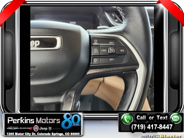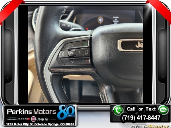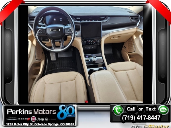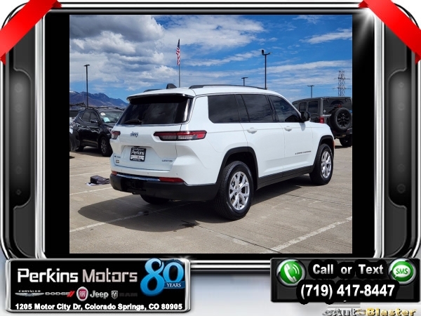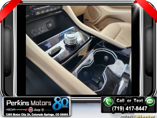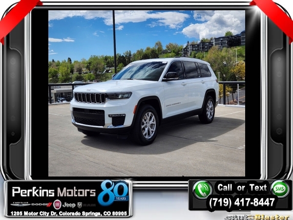 Bright White Clearcoat 4WD 3.6L V6 24V VVT 8-Speed Automatic<br><br><br>Clean CARFAX.<br><br>Check us out at www.perkinsmotors.com to see our specials! Since opening our doors in 1944, we’ve been proud to serve Colorado Springs, CO, and the surrounding areas of Pueblo, Castle Rock and Denver, CO. Throughout this time of being family owned for 80 years, we’ve maintained a firm commitment to our customers: to offer a wide selection of New Chrysler, Dodge, Fiat, Jeep, and Ram vehicles and quality pre-owned vehicles, and provide a quick, no-hassle car-buying process that ensures everyone drives off the lot satisfied with their purchase.<br><br><br>Quick Order Package 22E, 10.1 Touchscreen Display, 3.45 Rear Axle Ratio, 3rd row seats: split-bench, 4-Wheel Disc Brakes, 506 Watt Amplifier, 6 Speakers, 9 Amplified Speakers w/Subwoofer, ABS brakes, Air Conditioning, Alloy wheels, AM/FM radio: SiriusXM w/360L, Anti-whiplash front head restraints, Apple CarPlay, Apple CarPlay/Android Auto, Audio memory, Auto High-beam Headlights, Automatic temperature control, Brake assist, Bumpers: body-color, Capri Leather Seats, Compass, Connected Travel & Traffic Services, Connectivity - US/Canada, Cruise Control, Delay-off headlights, Disassociated Touchscreen Display, Driver door bin, Driver vanity mirror, Dual front impact airbags, Dual front side impact airbags, Dual-Pane Panoramic Sunroof, Electronic Stability Control, Emergency communication system, Four wheel independent suspension, Front anti-roll bar, Front Bucket Seats, Front Center Armrest w/Storage, Front dual zone A/C, Front fog lights, Front reading lights, Fully automatic headlights, Garage door transmitter, Google Android Auto, GPS Antenna Input, GPS Navigation, HD Radio, Heated door mirrors, Heated front seats, Heated rear seats, Heated steering wheel, Illuminated entry, Integrated Center Stack Radio, Integrated Voice Command w/Bluetooth, Interior Rear Facing Camera, Knee airbag, Leather steering wheel, Low tire pressure warning, Manual Fold Seatbacks, Memory seat, Normal Duty Suspension, Occupant sensing airbag, Outside temperature display, Overhead airbag, Overhead console, Panic alarm, ParkView Rear Back-Up Camera, Passenger door bin, Passenger vanity mirror, Power door mirrors, Power driver seat, Power Liftgate, Power passenger seat, Power steering, Power windows, Radio data system, Radio: Uconnect 5 Nav w/10.1 Display, Radio: Uconnect 5 w/8.4 Display, Rear air conditioning, Rear anti-roll bar, Rear reading lights, Rear window defroster, Rear window wiper, Reclining 3rd row seat, Remote keyless entry, Roof rack: rails only, Security system, SiriusXM Satellite Radio, SiriusXM w/360L, Speed-Sensitive Wipers, Split folding rear seat, Spoiler, Steering wheel mounted audio controls, Tachometer, Telescoping steering wheel, Tilt steering wheel, Traction control, Trip computer, Turn signal indicator mirrors, USB Host Flip, Variably intermittent wipers, Voltmeter, and Wheels: 18 x 8.0 Fully Painted Aluminum 2.