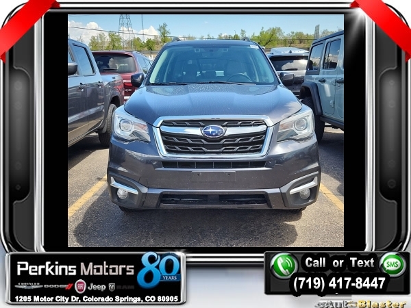 Dark Gray Metallic AWD 2.5L 4-Cylinder DOHC 16V VVT Lineartronic CVT<br><br><br>Clean CARFAX.<br><br>Check us out at www.perkinsmotors.com to see our specials! Since opening our doors in 1944, we’ve been proud to serve Colorado Springs, CO, and the surrounding areas of Pueblo, Castle Rock and Denver, CO. Throughout this time of being family owned for 80 years, we’ve maintained a firm commitment to our customers: to offer a wide selection of New Chrysler, Dodge, Fiat, Jeep, and Ram vehicles and quality pre-owned vehicles, and provide a quick, no-hassle car-buying process that ensures everyone drives off the lot satisfied with their purchase.<br><br><br>Awards:<br> * 2018 KBB.com 10 Best All-Wheel-Drive Vehicles Under $25,000 * 2018 KBB.com 10 Best SUVs Under $25,000 * 2018 KBB.com 10 Most Awarded Brands * 2018 KBB.com Brand Image Awards<br><br>Navigation Sys & Audio w/harman kardon & EyeSight (EyeSight System, harman/kardon 440W Amp & Speaker System, High Beam Assist (HBA), High Grade Instrument Cluster w/Color LCD Display, LED Low & High Beam Headlights, Radio: Subaru Starlink 7.0 Multimedia Nav System, Reverse Automatic Braking System (RAB), and Steering Responsive Headlights (SRH)), 3.70 Axle Ratio, 4-Wheel Disc Brakes, 6 Speakers, ABS brakes, Air Conditioning, Alloy wheels, AM/FM radio: SiriusXM, Automatic temperature control, Brake assist, Bumpers: body-color, CD player, Cruise Control, Driver door bin, Driver vanity mirror, Dual front impact airbags, Dual front side impact airbags, Electronic Stability Control, Emergency communication system: STARLINK, Exterior Parking Camera Rear, Four wheel independent suspension, Front anti-roll bar, Front Bucket Seats, Front Center Armrest, Front fog lights, Front reading lights, Fully automatic headlights, Heated door mirrors, Heated Front Bucket Seats, Heated front seats, Illuminated entry, Knee airbag, Leather Shift Knob, Low tire pressure warning, Navigation System, Occupant sensing airbag, Outside temperature display, Overhead airbag, Overhead console, Panic alarm, Passenger door bin, Passenger vanity mirror, Perforated Leather-Trimmed Upholstery, Power door mirrors, Power driver seat, Power Liftgate, Power moonroof, Power steering, Power windows, Radio data system, Radio: Subaru Starlink 7.0 Multimedia Plus System, Rear anti-roll bar, Rear seat center armrest, Rear window defroster, Rear window wiper, Remote keyless entry, Roof rack: rails only, Security system, Split folding rear seat, Spoiler, Steering wheel mounted audio controls, Tachometer, Telescoping steering wheel, Tilt steering wheel, Traction control, Trip computer, Variably intermittent wipers, and Wheels: 17 x 7.0J Black Machine Finish Alloy.