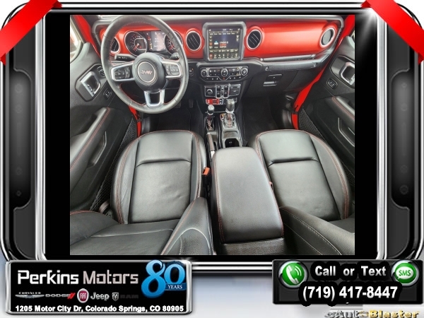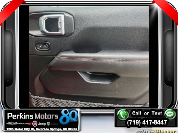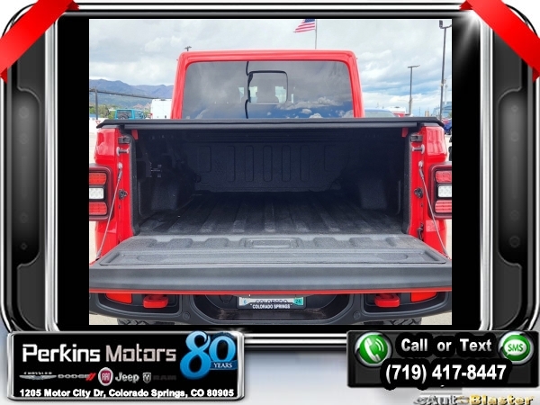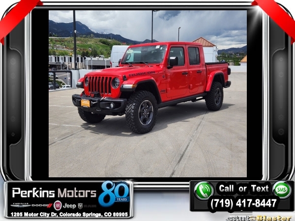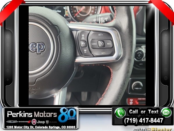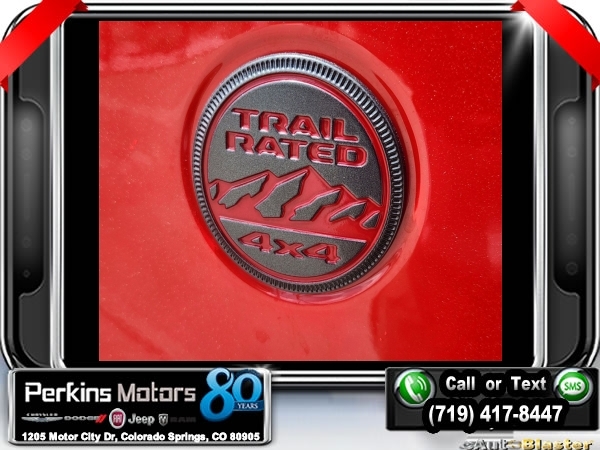 Firecracker Red Clearcoat 4WD 3.6L V6 24V VVT 8-Speed Automatic<br><br><br>CARFAX One-Owner. Clean CARFAX.<br><br>Check us out at www.perkinsmotors.com to see our specials! Since opening our doors in 1944, we’ve been proud to serve Colorado Springs, CO, and the surrounding areas of Pueblo, Castle Rock and Denver, CO. Throughout this time of being family owned for 80 years, we’ve maintained a firm commitment to our customers: to offer a wide selection of New Chrysler, Dodge, Fiat, Jeep, and Ram vehicles and quality pre-owned vehicles, and provide a quick, no-hassle car-buying process that ensures everyone drives off the lot satisfied with their purchase.<br><br><br>Awards:<br> * JD Power Initial Quality Study (IQS)<br><br>8.4 Radio & Premium Audio Group (1-Year SiriusXM Guardian Trial, 8.4 Touchscreen Display, Alpine Premium Audio System, Auto-Dimming Rear-View Mirror, GPS Navigation, Radio: Uconnect 4C Nav w/8.4 Display, SiriusXM Traffic Plus, and SiriusXM Travel Link), Advanced Safety Group (Advanced Brake Assist and Auto High Beam Headlamp Control), Auxiliary Switch Group (Auxiliary Switches), Cold Weather Group (Heated Front Seats), GVWR: 6,250 lbs w/Max Tow Package, LED Lighting Group, Quick Order Package 24R, Safety Group (Blind Spot & Cross Path Detection), Trail Rail Management System (Exterior 115V AC Outlet), Trailer Tow Package (Class IV Hitch Receiver, Heavy-Duty Engine Cooling, and Trailer Hitch Zoom), 4-Wheel Disc Brakes, 4.10 Rear Axle Ratio, 8 Speakers, 97 mph Maximum Speed Calibration, ABS brakes, Air Conditioning, Alloy wheels, AM/FM radio: SiriusXM, Apple CarPlay/Android Auto, Automatic temperature control, Bluetooth Wireless Speaker, Body Color 3-Piece Hard Top, Body Color Fender Flares (2-Piece), Brake assist, Compass, Cruise Control, Delay-off headlights, Driver door bin, Driver vanity mirror, Dual front impact airbags, Dual front side impact airbags, Electronic Stability Control, Engine Block Heater, Freedom Panel Storage Bag, Front anti-roll bar, Front Bucket Seats, Front Center Armrest w/Storage, Front dual zone A/C, Front fog lights, Front License Plate Bracket, Front reading lights, Fully automatic headlights, Garage door transmitter, Heated door mirrors, Illuminated entry, Integrated Off-Road Camera, Integrated roll-over protection, Leather steering wheel, Low tire pressure warning, Manufacturer's Statement of Origin, MOPAR Cold Air Intake System, MOPAR Hardtop Headliner, MOPAR Spray In Bedliner, Occupant sensing airbag, Outside temperature display, Panic alarm, ParkView Rear Back-Up Camera, Passenger door bin, Passenger vanity mirror, Performance Suspension, Power door mirrors, Power steering, Power windows, Premium Cloth Low-Back Bucket Seats, Radio data system, Radio: Uconnect 4 w/7 Display, Rear anti-roll bar, Rear reading lights, Rear Sliding Window, Redical Instrument Panel Bezels, Remote keyless entry, Remote Proximity Keyless Entry, Remote Start System, Roll-Up Tonneau Cover, Security system, Split folding rear seat, Steel Front Bumper, Steering wheel mounted audio controls, Tachometer, Telescoping steering wheel, Tilt steering wheel, Traction control, Trip computer, Variably intermittent wipers, Voltmeter, and Wheels: 17 x 7.5 Granite Crystal Aluminum.