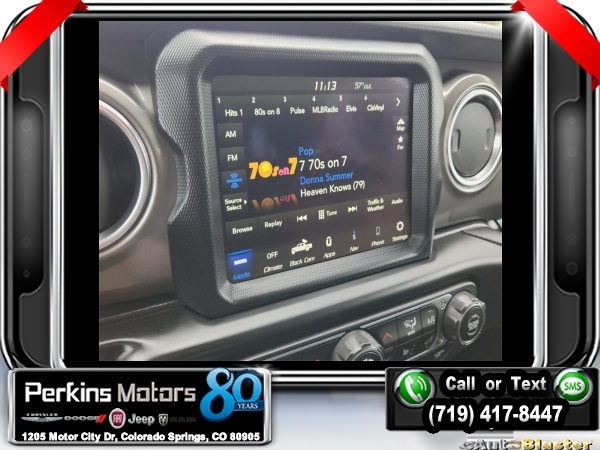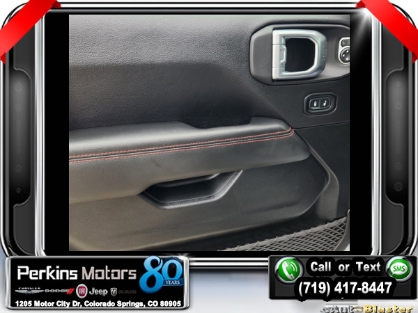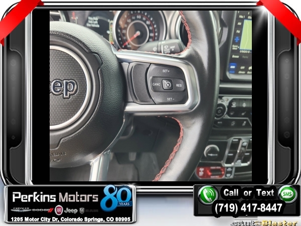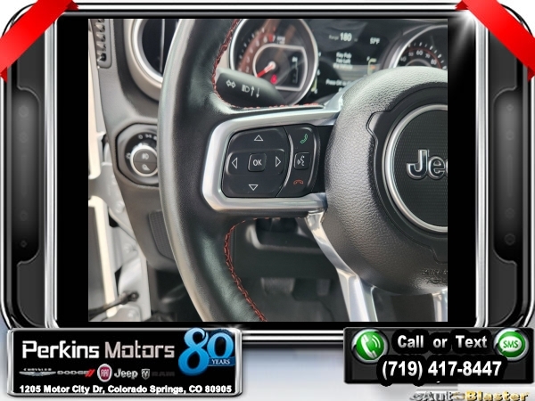Silver Zynith Clearcoat 4WD 3.6L V6 24V VVT 8-Speed Automatic<br><br><br>CARFAX One-Owner. Clean CARFAX.<br><br>Check us out at www.perkinsmotors.com to see our specials! Since opening our doors in 1944, we’ve been proud to serve Colorado Springs, CO, and the surrounding areas of Pueblo, Castle Rock and Denver, CO. Throughout this time of being family owned for 80 years, we’ve maintained a firm commitment to our customers: to offer a wide selection of New Chrysler, Dodge, Fiat, Jeep, and Ram vehicles and quality pre-owned vehicles, and provide a quick, no-hassle car-buying process that ensures everyone drives off the lot satisfied with their purchase.<br><br><br>Cold Weather Group, Quick Order Package 24R, Trailer Tow Package, 4-Wheel Disc Brakes, 4.10 Rear Axle Ratio, 9 Speakers, 97 MPH Vehicle Max Speed Calibration, ABS brakes, Air Conditioning, Alloy wheels, AM/FM radio: SiriusXM, Apple CarPlay/Android Auto, Auto-dimming Rear-View mirror, Automatic temperature control, Black 3-Piece Hard Top, Body Color Fender Flares (2-Piece), Brake assist, Compass, Corning Gorilla Glass, Cruise Control, Delay-off headlights, Driver door bin, Driver vanity mirror, Dual front impact airbags, Dual front side impact airbags, Electronic Stability Control, Emergency communication system: SiriusXM Guardian, Front anti-roll bar, Front Bucket Seats, Front Center Armrest w/Storage, Front dual zone A/C, Front fog lights, Front License Plate Bracket, Front reading lights, Fully automatic headlights, Garage door transmitter, Heated door mirrors, Illuminated entry, Integrated roll-over protection, Leather steering wheel, Low tire pressure warning, MOPAR All-Weather Slush Mats, MOPAR Spray In Bedliner, Navigation System, Occupant sensing airbag, Outside temperature display, Panic alarm, ParkView Rear Back-Up Camera, Passenger door bin, Passenger vanity mirror, Performance Suspension, Power door mirrors, Power steering, Power windows, Premium Cloth Low-Back Bucket Seats, Radio data system, Radio: Uconnect 4C Nav w/8.4 Display, Rear anti-roll bar, Rear reading lights, Remote keyless entry, Remote Start System, Security system, Split folding rear seat, Steering wheel mounted audio controls, Tachometer, Telescoping steering wheel, Tilt steering wheel, Traction control, Trip computer, Variably intermittent wipers, Voltmeter, and Wheels: 17 x 7.5 Granite Crystal Aluminum.