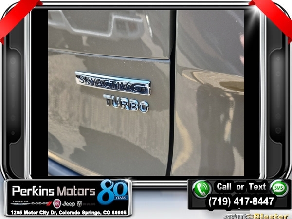 Zircon Sand Metallic AWD 2.5L I4 Turbocharged DOHC 16V LEV3-ULEV125 227hp 6-Speed Automatic<br><br><br>CARFAX One-Owner. Clean CARFAX.<br><br>Check us out at www.perkinsmotors.com to see our specials! Since opening our doors in 1944, we’ve been proud to serve Colorado Springs, CO, and the surrounding areas of Pueblo, Castle Rock and Denver, CO. Throughout this time of being family owned for 80 years, we’ve maintained a firm commitment to our customers: to offer a wide selection of New Chrysler, Dodge, Fiat, Jeep, and Ram vehicles and quality pre-owned vehicles, and provide a quick, no-hassle car-buying process that ensures everyone drives off the lot satisfied with their purchase.<br><br><br>Cargo Package (Cargo Blocks), 12 Speakers, 20 x 8J Aluminum Alloy Wheels, 3.841 Axle Ratio, 4-Wheel Disc Brakes, ABS brakes, Air Conditioning, Alloy wheels, AM/FM radio: SiriusXM, AppLink/Apple CarPlay and Android Auto, Auto High-beam Headlights, Auto-dimming door mirrors, Auto-dimming Rear-View mirror, Automatic temperature control, Brake assist, Bumpers: body-color, Carpet Cargo Mat, Compass, Cruise Control, Delay-off headlights, Driver door bin, Driver vanity mirror, Dual front impact airbags, Dual front side impact airbags, Electronic Stability Control, Emergency communication system: MAZDA CONNECT, Front anti-roll bar, Front Bucket Seats, Front Center Armrest w/Storage, Front dual zone A/C, Front reading lights, Front wheel independent suspension, Fully automatic headlights, Garage door transmitter: HomeLink, Heads-Up Display, Heated & Ventilated Front Bucket Seats, Heated door mirrors, Heated front seats, Heated rear seats, Heated steering wheel, Illuminated entry, Knee airbag, Leather Seat Trim, Leather Shift Knob, Leather steering wheel, Low tire pressure warning, Memory seat, Navigation system: MAZDA CONNECT, Occupant sensing airbag, Outside temperature display, Overhead airbag, Overhead console, Panic alarm, Passenger door bin, Passenger vanity mirror, Power door mirrors, Power driver seat, Power Liftgate, Power moonroof, Power passenger seat, Power steering, Power windows, Radio data system, Radio: AM/FM/HD Audio System, Rain sensing wipers, Rear seat center armrest, Rear window defroster, Rear window wiper, Remote keyless entry, Roof rack: rails only, Speed-sensing steering, Split folding rear seat, Spoiler, Steering wheel mounted audio controls, Tachometer, Telescoping steering wheel, Tilt steering wheel, Traction control, Trip computer, Turn signal indicator mirrors, Variably intermittent wipers, Ventilated front seats, and Zircon Sand Metallic Paint Charge.