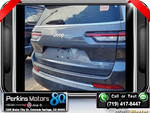 Baltic Gray Metallic Clearcoat 4WD 3.6L V6 24V VVT 8-Speed Automatic<br><br><br>CARFAX One-Owner.<br><br>Check us out at www.perkinsmotors.com to see our specials! Since opening our doors in 1944, we’ve been proud to serve Colorado Springs, CO, and the surrounding areas of Pueblo, Castle Rock and Denver, CO. Throughout this time of being family owned for 80 years, we’ve maintained a firm commitment to our customers: to offer a wide selection of New Chrysler, Dodge, Fiat, Jeep, and Ram vehicles and quality pre-owned vehicles, and provide a quick, no-hassle car-buying process that ensures everyone drives off the lot satisfied with their purchase.<br><br><br>Luxury Tech Group II (2nd Row Manual Window Shades, Auto-Dimming Exterior Driver Mirror, Capri Leatherette w/Axis II Seats, Integrated Off-Road Camera, Intersection Collision Assist System, Memory Steering Column, ParkSense Front/Rear Park Assist w/Stop, Passive Entry - Front/Rear Doors, Liftgate, Power Tilt/Telescope Steering Column, Rain Sensitive Windshield Wipers, Rear Back Up Camera Washer, Rearview Autodim Digital Display Mirror, Surround View Camera System, Ventilated Front Seats, and Wireless Charging Pad), Quick Order Package 23E, Trailer Tow Group (B) (DISC) (220 Amp Alternator, Automatic Headlamp Leveling System, Heavy-Duty Engine Cooling, Rear Load Leveling Suspension, and Trailer Hitch Zoom), 3.45 Rear Axle Ratio, 3rd row seats: split-bench, 4-Wheel Disc Brakes, 6 Speakers, ABS brakes, Active Noise Control System, Air Conditioning, Alloy wheels, AM/FM radio: SiriusXM with 360L, Anti-whiplash front head restraints, Audio memory, Auto High-beam Headlights, Automatic temperature control, Brake assist, Bumpers: body-color, Capri Leatherette Seats, Compass, Cruise Control, Delay-off headlights, Driver door bin, Driver vanity mirror, Dual front impact airbags, Dual front side impact airbags, Electronic Stability Control, Emergency communication system, Four wheel independent suspension, Front anti-roll bar, Front Bucket Seats, Front Center Armrest w/Storage, Front dual zone A/C, Front fog lights, Front License Plate Bracket, Front reading lights, Fully automatic headlights, Garage door transmitter, Heated door mirrors, Heated front seats, Heated rear seats, Heated steering wheel, Illuminated entry, Knee airbag, Low tire pressure warning, Manual Fold Seatbacks, Memory seat, Molded In Color Black/Gloss Black Roof Rails, MOPAR Bright Side Steps, Navigation System, Normal Duty Suspension, Occupant sensing airbag, Outside temperature display, Overhead airbag, Overhead console, Panic alarm, ParkView Rear Back-Up Camera, Passenger door bin, Passenger vanity mirror, Power door mirrors, Power driver seat, Power Liftgate, Power passenger seat, Power steering, Power windows, Radio data system, Radio: Uconnect 5 Nav w/10.1 Display, Rear air conditioning, Rear anti-roll bar, Rear reading lights, Rear window defroster, Rear window wiper, Reclining 3rd row seat, Remote keyless entry, Roof rack: rails only, Security system, Speed-Sensitive Wipers, Split folding rear seat, Spoiler, Steering wheel mounted audio controls, Tachometer, Telescoping steering wheel, Tilt steering wheel, Traction control, Trip computer, Turn signal indicator mirrors, Variably intermittent wipers, Voltmeter, and Wheels: 18 x 8.0 Fully Painted Aluminum.