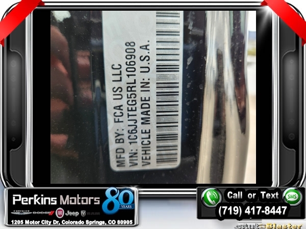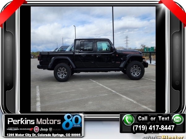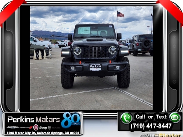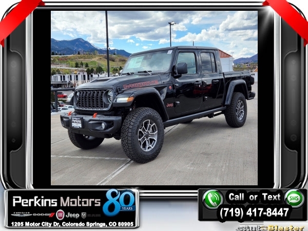 Factory MSRP: $69,805 $6,605 off MSRP! Black Clearcoat 2024 Jeep Gladiator Mojave 4WD 8-Speed Automatic 3.6L V6 24V VVT<br><br>Check us out at www.perkinsmotors.com to see our specials! Since opening our doors in 1944, we’ve been proud to serve Colorado Springs, CO, and the surrounding areas of Pueblo, Castle Rock and Denver, CO. Throughout this time of being family owned for 80 years, we’ve maintained a firm commitment to our customers: to offer a wide selection of New Chrysler, Dodge, Fiat, Jeep, and Ram vehicles and quality pre-owned vehicles, and provide a quick, no-hassle car-buying process that ensures everyone drives off the lot satisfied with their purchase.<br><br>Mojave X Package, Quick Order Package 24A Mojave X (12.3 Touchscreen Display, 4G LTE Wi-Fi Hot Spot, Alexa Built-In, Apple CarPlay, Blind Spot & Cross Path Detection, Body Color Rubicon Highline Flare, Connectivity - US/Canada, Google Android Auto, GPS Antenna Input, Heated Steering Wheel, Integrated Center Stack Radio, Leather Trimmed Bucket Seats, Leather Wrapped Park Brake Handle, MOPAR Hardtop Headliner, No Soft Top, ParkSense Rear Park Assist System, Premium Door Trim Panel, Rear Window Defroster, Rock Protection Sill Rails, SiriusXM Radio Service, SiriusXM w/360L, Steel Front Bumper, and Steel Rear Bumper), 4-Wheel Disc Brakes, 4.10 Rear Axle Ratio, 8 Speakers, 97 MPH Vehicle Max Speed Calibration, ABS brakes, Air Conditioning, Alloy wheels, AM/FM radio: SiriusXM with 360L, Apple CarPlay/Android Auto, Automatic temperature control, Brake assist, Compass, Cruise Control, Delay-off headlights, Driver door bin, Driver vanity mirror, Dual front impact airbags, Dual front side impact airbags, Electronic Stability Control, Emergency communication system: Jeep Connect, For Details, Visit DriveUconnect.com, For More Info, Call 800-643-2112, Front anti-roll bar, Front Bucket Seats, Front Center Armrest w/Storage, Front dual zone A/C, Front fog lights, Front License Plate Bracket, Front reading lights, Fully automatic headlights, Heated door mirrors, Heavy Duty Suspension w/Gas Shocks, Illuminated entry, Integrated roll-over protection, Leather steering wheel, Low tire pressure warning, Manufacturer's Statement of Origin, MOPAR All-Weather Slush Mats, MOPAR Spray In Bedliner, Occupant sensing airbag, Outside temperature display, Overhead airbag, Panic alarm, Passenger door bin, Passenger vanity mirror, Power door mirrors, Power steering, Power windows, Premium Cloth Seats w/Sport Bolsters, Radio data system, Radio: Uconnect 5 w/12.3 Display, Rear anti-roll bar, Rear reading lights, Remote keyless entry, Security system, Split folding rear seat, Steering wheel mounted audio controls, Tachometer, Telescoping steering wheel, Tilt steering wheel, Traction control, Trip computer, Variably intermittent wipers, Voltmeter, Wheels: 17 x 7.5 Dark Gray Painted, and Wheels: 17 x 7.5 Machined/Painted Dark GraY. Sale price includes all manufacture's incentives and dealer discounts. Sale price not available on lease or compatible with special APR. $2000 - 2024 CJR Bonus Cash 24CRA. Exp. 06/03/2024
