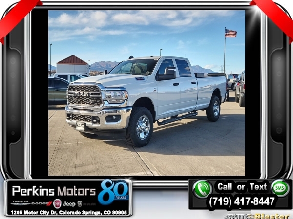 Factory MSRP: $69,210 Bright White Clearcoat 2024 Ram 3500 Tradesman 4WD 6-Speed Automatic I6<br>REVERSABLE GOOSENECK, SPRAY IN BEDLINER, 7 WAY PLUG.<br>Check us out at www.perkinsmotors.com to see our specials! Since opening our doors in 1944, we’ve been proud to serve Colorado Springs, CO, and the surrounding areas of Pueblo, Castle Rock and Denver, CO. Throughout this time of being family owned for 80 years, we’ve maintained a firm commitment to our customers: to offer a wide selection of New Chrysler, Dodge, Fiat, Jeep, and Ram vehicles and quality pre-owned vehicles, and provide a quick, no-hassle car-buying process that ensures everyone drives off the lot satisfied with their purchase.<br><br>Chrome Appearance Group (Bright Front Bumper, Bright Rear Bumper, Center Hub, Chrome Grille Surround, and Matte Black Mesh w/Chrome Grille), Cold Weather Group (Engine Block Heater and MOPAR Winter Front Grille Cover), Heavy Duty Snow Plow Prep Group (220 Amp Alternator), Quick Order Package 2HA Tradesman, Tradesman Level 2 Equipment Group (2 Way Rear Headrest Seat, 4 Way Front Headrests, 40/20/40 Split Bench Seat, Black Exterior Mirrors, Carpet Floor Covering, Cloth 40/20/40 Bench Seat, Exterior Mirrors Courtesy Lamps, Exterior Mirrors w/Heating Element, Exterior Mirrors w/Supplemental Signals, Front & Rear Floor Mats, Front Armrest w/Cupholders, Manual Adjust 4-Way Driver Seat, Manual Adjust 4-Way Front Passenger Seat, Manual Folding Exterior Mirrors, Manual Telescoping Mirrors, Mirror Running Lights, Power Adjust Mirrors, Power Heat Fold Telescopic Mirrors, Power-Adjustable Convex Aux Mirrors, Rear Folding Seat, Rear Window Defroster, Remote USB Port - Charge Only, and Storage Tray), 115V Auxiliary Front Power Outlet, 3.73 Axle Ratio, 4-Wheel Disc Brakes, 6 Speakers, ABS brakes, Active Noise Control System, Air Conditioning, AM/FM radio, Brake assist, Compass, Cruise Control, Dash Pass Thru Wire Circuits, Delay-off headlights, Driver door bin, Dual front impact airbags, Dual front side impact airbags, Electric Shift-On-The-Fly Transfer Case, Electronic Stability Control, Electronically Controlled Throttle, Emergency communication system: SiriusXM Guardian, For Details Visit DriveUconnect.com, Front anti-roll bar, Front Center Armrest w/Storage, Front License Plate Bracket, Front reading lights, Fully automatic headlights, Global Telematics Box Module (TBM), GPS Antenna Input, HD Vinyl 40/20/40 Split Bench Seat, I/P Mounted Auxiliary Switches, Illuminated entry, Integrated Center Stack Radio, Integrated Voice Command w/Bluetooth, Low tire pressure warning, Occupant sensing airbag, Outside temperature display, Overhead airbag, Overhead console, ParkView Rear Back-Up Camera, Passenger door bin, Passenger vanity mirror, Power steering, Power windows, Radio data system, Radio: Uconnect 3 w/5 Display, Radio: Uconnect 5 w/8.4 Display, Rear step bumper, SiriusXM Radio Service, Tachometer, Tilt steering wheel, Tip Start, Traction control, Trailer Brake Control, Trailer Light Check, Upfitter Electronic Module (VSIM), Variably intermittent wipers, Voltmeter, Wheels: 18 x 8.0 Steel, and Wheels: 18 x 8.0 Steel Chrome ClaD. Price includes $4,299 in dealer added accessories.