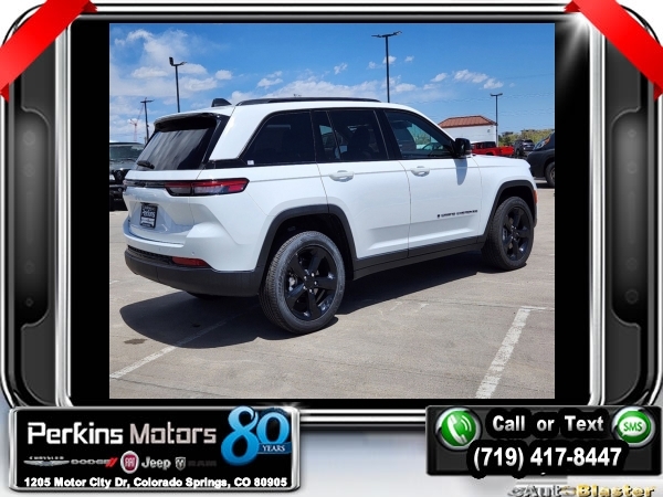 Factory MSRP: $49,575 $4,067 off MSRP! Bright White Clearcoat 2024 Jeep Grand Cherokee Laredo 4WD 8-Speed Automatic 3.6L V6 24V VVT<br>4WD.<br>Check us out at www.perkinsmotors.com to see our specials! Since opening our doors in 1944, we’ve been proud to serve Colorado Springs, CO, and the surrounding areas of Pueblo, Castle Rock and Denver, CO. Throughout this time of being family owned for 80 years, we’ve maintained a firm commitment to our customers: to offer a wide selection of New Chrysler, Dodge, Fiat, Jeep, and Ram vehicles and quality pre-owned vehicles, and provide a quick, no-hassle car-buying process that ensures everyone drives off the lot satisfied with their purchase.<br><br>Quick Order Package 23M Altitude X, Trailer Tow Package, 4WD, 3.45 Rear Axle Ratio, 4-Wheel Disc Brakes, 6 Speakers, ABS brakes, Air Conditioning, Alloy wheels, Anti-whiplash front head restraints, Automatic temperature control, Brake assist, Bumpers: body-color, Cloth Seats, Compass, Cruise Control, Delay-off headlights, Driver door bin, Driver vanity mirror, Dual front impact airbags, Dual front side impact airbags, Electronic Stability Control, Emergency communication system, Four wheel independent suspension, Front anti-roll bar, Front Bucket Seats, Front Center Armrest w/Storage, Front dual zone A/C, Front License Plate Bracket, Front reading lights, Fully automatic headlights, Heated door mirrors, Illuminated entry, Knee airbag, Low tire pressure warning, Normal Duty Suspension, Occupant sensing airbag, Outside temperature display, Overhead airbag, Overhead console, Panic alarm, ParkView Rear Back-Up Camera, Passenger door bin, Passenger vanity mirror, Power door mirrors, Power driver seat, Power steering, Power windows, Radio data system, Radio: Uconnect 5 w/8.4 Display, Rear anti-roll bar, Rear reading lights, Rear window defroster, Rear window wiper, Remote keyless entry, Roof rack: rails only, Security system, Speed-Sensitive Wipers, Split folding rear seat, Spoiler, Steering wheel mounted audio controls, Tachometer, Telescoping steering wheel, Tilt steering wheel, Traction control, Trip computer, Variably intermittent wipers, Voltmeter, Wheels: 17 x 6.5 Fully Painted Aluminum, and Wheels: 20 x 8.5 Gloss Black Painted Aluminum.<br><br>19/26 City/Highway MPG Sale price includes all manufacture's incentives and dealer discounts. Sale price not available on lease or compatible with special APR. $1000 - 2024 JEEP Denver BC Retail Consumer Cash 74CR1. Exp. 06/03/2024 $500 - 2024 JEEP Retail Bonus Cash 24CRA1. Exp. 01/02/2025
