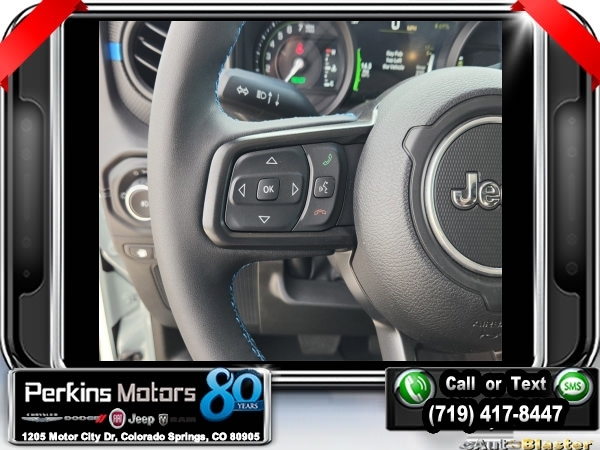 Factory MSRP: $69,225 $10,124 off MSRP! Priced below KBB Fair Purchase Price! Earl Clearcoat 2024 Jeep Wrangler Rubicon 4xe 4WD 8-Speed Automatic 2.0L I4 DOHC<br>2.0L I4 DOHC.<br>Check us out at www.perkinsmotors.com to see our specials! Since opening our doors in 1944, we’ve been proud to serve Colorado Springs, CO, and the surrounding areas of Pueblo, Castle Rock and Denver, CO. Throughout this time of being family owned for 80 years, we’ve maintained a firm commitment to our customers: to offer a wide selection of New Chrysler, Dodge, Fiat, Jeep, and Ram vehicles and quality pre-owned vehicles, and provide a quick, no-hassle car-buying process that ensures everyone drives off the lot satisfied with their purchase.<br><br>Convenience Group (Heated Front Seats and Universal Garage Door Opener), Quick Order Package 29V Rubicon, Safety Group, Technology Group (12.3 Touchscreen Display, 4G LTE Wi-Fi Hot Spot, Apple CarPlay, Connectivity - US/Canada, Disassociated Touchscreen Display, Google Android Auto, GPS Navigation, HD Radio, Integrated Center Stack Radio, Integrated Off-Road Camera, Integrated Voice Command w/Bluetooth, Radio: Uconnect 5 Nav w/12.3 Display, SiriusXM Radio Service, and SiriusXM w/360L), 2.0L I4 DOHC, 4-Wheel Disc Brakes, 4.10 Rear Axle Ratio, 8 Speakers, ABS brakes, Air Conditioning, Alloy wheels, AM/FM radio: SiriusXM, Apple CarPlay/Android Auto, Automatic temperature control, Black 3-Piece Hard Top, Brake assist, Compass, Cruise Control, Delay-off headlights, Driver door bin, Driver vanity mirror, Dual front impact airbags, Dual front side impact airbags, Electronic Stability Control, Freedom Panel Storage Bag, Front anti-roll bar, Front Bucket Seats, Front Center Armrest w/Storage, Front dual zone A/C, Front fog lights, Front reading lights, Fully automatic headlights, Garage door transmitter, Heated door mirrors, Illuminated entry, Integrated roll-over protection, Low tire pressure warning, MOPAR All-Weather Floor Mats, No Soft Top, Occupant sensing airbag, Outside temperature display, Overhead airbag, Panic alarm, ParkView Rear Back-Up Camera, Passenger door bin, Passenger vanity mirror, Performance Suspension, Power door mirrors, Power steering, Power windows, Radio data system, Radio: Uconnect 5 w/12.3 Display, Rear anti-roll bar, Rear reading lights, Remote keyless entry, Security system, Split folding rear seat, Steering wheel mounted audio controls, Sustainable Premium Cloth Seats, Tachometer, Telescoping steering wheel, Tilt steering wheel, Traction control, Trip computer, Variably intermittent wipers, Voltmeter, and Wheels: 17 x 7.5 Machined w/Black Pockets. Sale price includes all manufacture's incentives and dealer discounts. Sale price not available on lease or compatible with special APR. $3000 - 2024 DJR National Retail Consumer Cash 24CR1. Exp. 06/03/2024 $3750 - Federal EV Tax Credit. Exp. 12/31/2024
