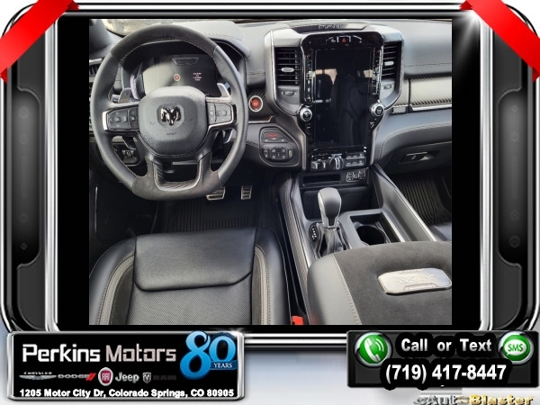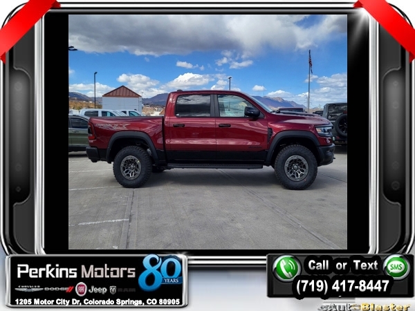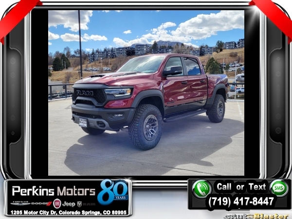 Factory MSRP: $125,215 Delmonico Red Pearlcoat 2024 Ram 1500 TRX 4WD 8-Speed Automatic 6.2L Supercharged HEMI V8 SRT<br>Market Adjustment.<br>Check us out at www.perkinsmotors.com to see our specials! Since opening our doors in 1944, we’ve been proud to serve Colorado Springs, CO, and the surrounding areas of Pueblo, Castle Rock and Denver, CO. Throughout this time of being family owned for 80 years, we’ve maintained a firm commitment to our customers: to offer a wide selection of New Chrysler, Dodge, Fiat, Jeep, and Ram vehicles and quality pre-owned vehicles, and provide a quick, no-hassle car-buying process that ensures everyone drives off the lot satisfied with their purchase.<br><br>6.2L Supercharged V8 Final Edition (Adaptive Cruise Control w/Stop & Go, Lane Keep Assist, Leather/Carbon Flat-Bottom Steering Wheel, MOPAR 4 Adjustable Cargo Tie-Down Hooks, MOPAR Deployable Bed Step, MOPAR Spray In Bedliner, MOPAR TRX Hood Graphics, Patina Accent Stitching, Pedestrian Emergency Braking, Real Carbon Fiber Interior Accents, Special Edition Console Badge, Special Edition Hood Badge, Trailer Light Check, Trailer Reverse Steering Control, Trailer Tire Pressure Monitoring System, TRX Special Edition Side Graphics, and Wheels: 18 x 9 Bead Lock Aluminum), Quick Order Package 29Y TRX, TRX Level 2 Equipment Group (#2 Seat Foam Cushion, 2-Door Passive Entry, Front Door Locks, 4 Way Front Headrests, Accent Color Door Handles, Blind Spot & Cross Path Detection, Bucket Seats, Digital Rearview Mirror, Driver Seat Memory, Driver/Passenger Wrapped Assist Handles, Exterior Mirrors w/Memory, Front Door Accent Lighting, Front Seat Back Map Pockets, Full Length Premium Upgraded Floor Console, harman/kardon 19 Speaker Premium Sound, Heads-Up Display, Heated Front Seats, Heated Second Row Seats, Heated Steering Wheel, IP LED Ambient Light Pipe, Leather Trimmed Bucket Seats, Leather/Suede Flat-Bottom Steering Wheel, LED CHMSL Lamp, Luxury Front Door Trim Panel, MOPAR Bright Pedal Kit, ParkSense Front/Rear Park Assist w/Stop, Pick-Up Box Lighting, Power 4-Way Driver Lumbar Adjust, Power 4-Way Passenger Lumbar Adjust, Power 8-Way Driver & Passenger Seats, Power Adjustable Pedals w/Memory, Premium Wrapped IP Bezel, Radio/Driver Seat/Mirrors/Pedals Memory, Rain Sensitive Windshield Wipers, Rear 60/40 Folding Seat, Rear 60/40 Folding Split Recline Seat, Rear Door Accent Lighting, Rear Underseat Compartment Storage, Rear Window Defroster, Remote Tailgate Release, Sun Visors w/Illuminated Vanity Mirrors, Surround View Camera System, Trailer Brake Control, Universal Garage Door Opener, Ventilated Front Seats, Ventilated Rear Seats, and Wireless Charging Pad), 10 Speakers, 3.55 Rear Axle Ratio, 4-Wheel Disc Brakes, ABS brakes, Adaptive suspension, Air Conditioning, Alloy wheels, AM/FM radio: SiriusXM with 360L, Apple CarPlay/Android Auto, Auto High-beam Headlights, Auto-dimming door mirrors, Auto-dimming Rear-View mirror, Automatic temperature control, Brake assist, Cloth/Vinyl Bucket Seats, Compass, Cruise Control, Delay-off headlights, Dome Dual LED Reading Lamp, Driver door bin, Dual front impact airbags, Dual front side impact airbags, Dual-Pane Panoramic Sunroof, Electronic Stability Control, Exterior Mirrors Courtesy Lamps, Exterior Mirrors w/Heating Element, Exterior Mirrors w/Supplemental Signals, Front anti-roll bar, Front Bucket Seats, Front Center Armrest w/Storage, Front dual zone A/C, Front fog lights, Front License Plate Bracket, Front reading lights, Front wheel independent suspension, Fully automatic headlights, Heated door mirrors, Illuminated entry, Leather Shift Knob, Leather steering wheel, Low tire pressure warning, MOPAR Off-Road Style Running Boards, Navigation System, Occupant sensing airbag, Outside temperature display, Overhead airbag, Overhead console, Panic alarm, ParkView Rear Back-Up Camera, Passenger door bin, Passenger vanity mirror, Power door mirrors, Power driver seat, Power steering, Power windows, Power-Folding Mir