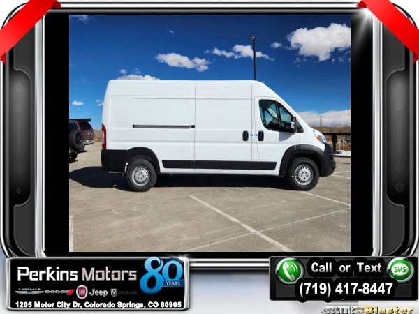 Factory MSRP: $54,340 Bright White Clearcoat 2024 Ram ProMaster 2500 High Roof FWD 9-Speed 948TE Automatic 3.6L V6 24V VVT<br>RANGER MOBILE SERVICE & PLUMBING VAN SHELVING WITH STABILIGRIP FLOORING.<br>Check us out at www.perkinsmotors.com to see our specials! Since opening our doors in 1944, we’ve been proud to serve Colorado Springs, CO, and the surrounding areas of Pueblo, Castle Rock and Denver, CO. Throughout this time of being family owned for 80 years, we’ve maintained a firm commitment to our customers: to offer a wide selection of New Chrysler, Dodge, Fiat, Jeep, and Ram vehicles and quality pre-owned vehicles, and provide a quick, no-hassle car-buying process that ensures everyone drives off the lot satisfied with their purchase.<br><br>Quick Order Package 22B Tradesman w/Pass Seat (4-Way Manual Adjust Front Passenger Seat and Passenger Bucket Seat), Upfitter's Prep Package (Auxiliary Switches and Upfitter Electronic Module (VSIM)), 4 Speakers, 4-Wheel Disc Brakes, 4.08 Axle Ratio, ABS brakes, Air Conditioning, AM/FM radio: SiriusXM, Apple CarPlay/Android Auto, Black/Gray Seats, Bodyside moldings, Brake assist, Cloth Bucket Seats, Driver door bin, Driver Seat Armrest, Driver's Seat Mounted Armrest, Electronic Stability Control, Exterior Mirrors w/Supplemental Signals, Front anti-roll bar, Front Bucket Seats, Front License Plate Bracket, Front reading lights, Front wheel independent suspension, Heavy Duty Suspension, Illuminated entry, Low tire pressure warning, Manufacturer's Statement of Origin, Outside temperature display, Overhead airbag, Overhead console, ParkView Rear Back-Up Camera, Passenger door bin, Passenger Double Seat, Power steering, Power windows, Radio: Uconnect 5 w/7 Display, Remote keyless entry, Steering wheel mounted audio controls, Tachometer, Telescoping steering wheel, Traction control, Trip computer, Turn signal indicator mirrors, Variably intermittent wipers, Wheel Center Cap, and Wheels: 16 x 6.0 Steel. Price includes $7,995 in dealer added accessories.