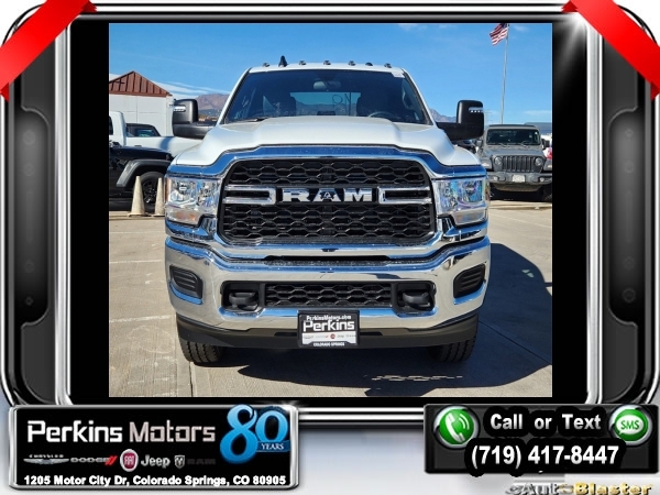 Factory MSRP: $59,515 $5,029 off MSRP! Bright White Clearcoat 2024 Ram 2500 Tradesman 4WD 8-Speed Automatic 6.4L V8<br><br>Check us out at www.perkinsmotors.com to see our specials! Since opening our doors in 1944, we’ve been proud to serve Colorado Springs, CO, and the surrounding areas of Pueblo, Castle Rock and Denver, CO. Throughout this time of being family owned for 80 years, we’ve maintained a firm commitment to our customers: to offer a wide selection of New Chrysler, Dodge, Fiat, Jeep, and Ram vehicles and quality pre-owned vehicles, and provide a quick, no-hassle car-buying process that ensures everyone drives off the lot satisfied with their purchase.<br><br>Chrome Appearance Group (Bright Front Bumper, Bright Rear Bumper, Center Hub, Chrome Grille Surround, Chrome Headlamp Bezels, Matte Black Mesh Grille w/Chrome, and Wheels: 18 x 8.0 Steel Chrome Clad), Protection Group (Tow Hooks), Quick Order Package 2GA Tradesman, Snow Chief Group (Anti-Spin Differential Rear Axle, Auxiliary Switches Prep, Clearance Lamps, Dash Pass Thru Wire Circuits, and I/P Mounted Auxiliary Switches), Tradesman Level 1 Equipment Group (Manual Folding Exterior Mirrors and Manual Telescoping Mirrors), 17 x 7.5 Steel Styled Wheels, 2 Way Rear Headrest Seat, 220 Amp Alternator, 3.73 Axle Ratio, 4 Way Front Headrests, 4-Wheel Disc Brakes, 40/20/40 Split Bench Seat, 4G LTE Wi-Fi Hot Spot, 50 Gallon Fuel Tank, 6 Speakers, 8.4 Touchscreen Display, ABS brakes, Active Noise Control System, Air Conditioning, All R1 Low Radios, All Radio Equipped Vehicles, AM/FM radio, Apple CarPlay, Auto Power-Folding Mirrors, Black Exterior Mirrors, Bluetooth Handsfree Phone & Audio, Brake assist, Compass, Connectivity - US/Canada, Cruise Control, CTR Stop Lamp w/Cargo View Camera, Delay-off headlights, Driver door bin, Dual Alternators Rated At 380 Amps, Dual front impact airbags, Dual front side impact airbags, Electric Shift-On-The-Fly Transfer Case, Electronic Stability Control, Electronically Controlled Throttle, Emergency communication system: SiriusXM Guardian, Exterior Mirrors Courtesy Lamps, Exterior Mirrors w/Heating Element, Exterior Mirrors w/Supplemental Signals, For Details, Visit DriveUconnect.com, For More Info, Call 800-643-2112, Forward & Reverse Utility Lights, Front anti-roll bar, Front Center Armrest w/Storage, Front License Plate Bracket, Front reading lights, Fully automatic headlights, Global Telematics Box Module (TBM), Google Android Auto, GPS Antenna Input, Heavy Duty Vinyl 40/20/40 Split Bench Seat, Illuminated entry, Integrated Center Stack Radio, Integrated Voice Command w/Bluetooth, Low tire pressure warning, Manual Adjust 4-Way Driver Seat, Manufacturer's Statement of Origin, Mirror Running Lights, MOPAR Front & Rear Rubber Floor Mats, Occupant sensing airbag, Outside temperature display, Overhead airbag, Overhead console, ParkView Rear Back-Up Camera, Passenger door bin, Passenger vanity mirror, Power Adjust Mirrors, Power Adjustable Convex Aux Mirrors, Power Heated Fold Telescope Mirrors, Power steering, Power Telescoping Mirrors, Power windows, Radio data system, Radio: Uconnect 3 w/5 Display, Radio: Uconnect 5 W w/8.4 Display, Rear anti-roll bar, Rear Folding Seat, Rear step bumper, Selectable Tire Fill Alert, SiriusXM Radio Service, SiriusXM Satellite Radio, Storage Tray, Tachometer, Tilt steering wheel, Tip Start, Traction control, Trailer Brake Control, Trailer Light Check, Variably intermittent wipers, and VoltmeteR. Sale price includes all manufacture's incentives and dealer discounts. Sale price not available on lease or compatible with special APR. $2000 - 2024 JR Denver BC Bonus Cash DECRA. Exp. 06/03/2024