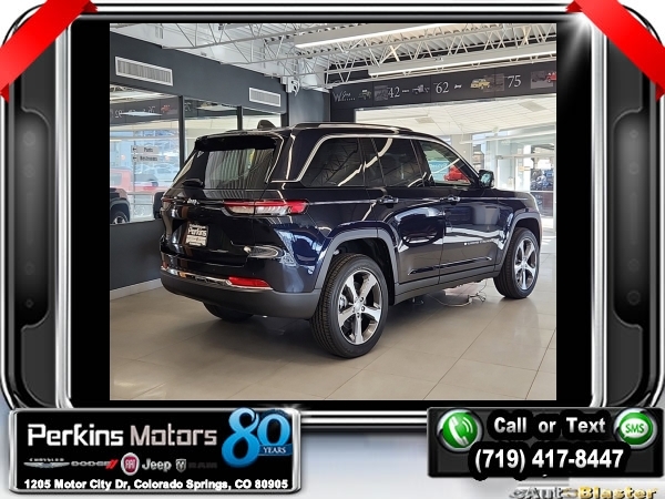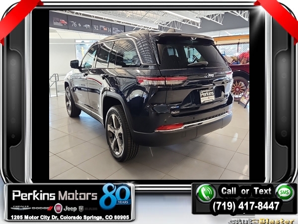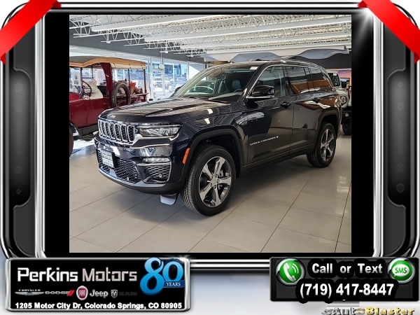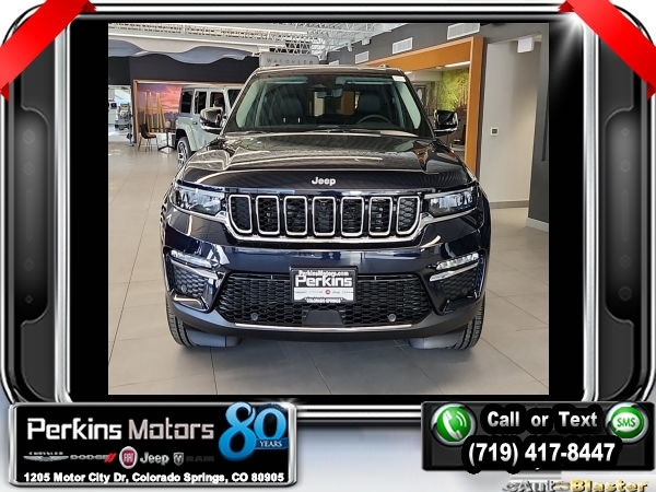 Factory MSRP: $68,800 $15,314 off MSRP! Priced below KBB Fair Purchase Price! Midnight Sky 2024 Jeep Grand Cherokee Base 4xe 4WD 8-Speed Automatic 2.0L I4 DOHC<br>2.0L I4 DOHC, 4WD.<br>Check us out at www.perkinsmotors.com to see our specials! Since opening our doors in 1944, we’ve been proud to serve Colorado Springs, CO, and the surrounding areas of Pueblo, Castle Rock and Denver, CO. Throughout this time of being family owned for 80 years, we’ve maintained a firm commitment to our customers: to offer a wide selection of New Chrysler, Dodge, Fiat, Jeep, and Ram vehicles and quality pre-owned vehicles, and provide a quick, no-hassle car-buying process that ensures everyone drives off the lot satisfied with their purchase.<br><br>Luxury Tech Group II (2nd-Row Manual Window Shades, Auto-Dimming Exterior Driver Mirror, Capri Leatherette w/Axis II Seats, Integrated Off-Road Camera, Intersection Collision Assist System, Memory Steering Column, ParkSense Front/Rear Park Assist w/Stop, Passive Entry - Front/Rear Doors, Liftgate, Power Tilt/Telescope Steering Column, Rain Sensitive Windshield Wipers, Rear Back Up Camera Washer, Rearview Autodim Digital Display Mirror, Surround View Camera System, Ventilated Front Seats, and Wireless Charging Pad), Quick Order Package 27F, Trailer Tow Package (7 & 4 Pin Wiring Harness, Automatic Headlamp Levelling System, Class IV Receiver Hitch, and Rear Load Levelling Suspension), 2.0L I4 DOHC, 4WD, 10 Speakers, 3.70 Rear Axle Ratio, 4-Wheel Disc Brakes, ABS brakes, Air Conditioning, Alloy wheels, AM/FM radio: SiriusXM with 360L, Anti-whiplash front head restraints, Audio memory, Auto High-beam Headlights, Automatic temperature control, Brake assist, Bumpers: body-color, Compass, Cruise Control, Delay-off headlights, Driver door bin, Driver vanity mirror, Dual front impact airbags, Dual front side impact airbags, Electronic Stability Control, Four wheel independent suspension, Front anti-roll bar, Front Bucket Seats, Front Center Armrest w/Storage, Front dual zone A/C, Front fog lights, Front License Plate Bracket, Front reading lights, Fully automatic headlights, Garage door transmitter, Heated door mirrors, Heated front seats, Heated rear seats, Heated steering wheel, Heavy Duty Suspension, Illuminated entry, Knee airbag, Low tire pressure warning, Memory seat, Navigation System, Occupant sensing airbag, Outside temperature display, Overhead airbag, Overhead console, Panic alarm, ParkView Rear Back-Up Camera, Passenger door bin, Passenger vanity mirror, Power door mirrors, Power driver seat, Power Liftgate, Power moonroof, Power passenger seat, Power steering, Power windows, Radio data system, Radio: Uconnect 5 Nav w/10.1 Display, Rear anti-roll bar, Rear reading lights, Rear window defroster, Rear window wiper, Remote keyless entry, Roof rack: rails only, Security system, Speed-Sensitive Wipers, Split folding rear seat, Spoiler, Steering wheel mounted audio controls, Tachometer, Telescoping steering wheel, Tilt steering wheel, Traction control, Trip computer, Turn signal indicator mirrors, Variably intermittent wipers, Voltmeter, Wheels: 18 x 8 Fully Painted Aluminum, and Wheels: 20 x 8.5 Machined Painted Aluminum. Sale price includes all manufacture's incentives and dealer discounts. Sale price not available on lease or compatible with special APR. $2500 - 2024 JR Denver BC Bonus Cash DECRA. Exp. 06/03/2024 $3000 - 2024 DJR National Retail Consumer Cash 24CR1. Exp. 06/03/2024 $3000 - 2024 JEEP Denver BC Retail Bonus Cash DECRA1. Exp. 06/03/2024 $3750 - Federal EV Tax Credit. Exp. 12/31/2024