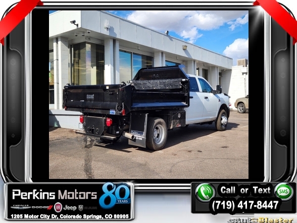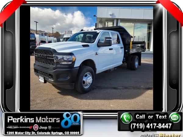 Factory MSRP: $72,090 Bright White Clearcoat 2024 Ram 3500 Tradesman 4WD Aisin 6-Speed Automatic Cummins 6.7L I6 Turbodiesel<br>Knapheide Dump Bed 12 Drop Sides 2.5 Yards.<br>Check us out at www.perkinsmotors.com to see our specials! Since opening our doors in 1944, we’ve been proud to serve Colorado Springs, CO, and the surrounding areas of Pueblo, Castle Rock and Denver, CO. Throughout this time of being family owned for 80 years, we’ve maintained a firm commitment to our customers: to offer a wide selection of New Chrysler, Dodge, Fiat, Jeep, and Ram vehicles and quality pre-owned vehicles, and provide a quick, no-hassle car-buying process that ensures everyone drives off the lot satisfied with their purchase.<br><br>Quick Order Package 2YA Tradesman (Black Exterior Truck Badging, Black Key Fob, Door Sill Scuff Pads, Glove Box, Halogen Quad Headlamps, Map/Courtesy Lamp, Matte Black Grille Surround, Overhead Console, Overhead Cupholder Lamp, and Rear Dome Lamp), 102 mph Maximum Speed, 11.50 Dual Wheels Rear Axle, 115V Auxiliary Power Outlet, 3.73 Axle Ratio, 4-Wheel Disc Brakes, 40/20/40 Split Bench Seat, 400W Inverter, 4G LTE Wi-Fi Hot Spot, 6 Speakers, 6000# Front Axle w/Hub Ext, 8.4 Touchscreen Display, ABS brakes, Air Conditioning, All R1 Low Radios, All Radio-Equipped Vehicles, Apple CarPlay, Bluetooth Handsfree Phone & Audio, Bright Wheel Skins, Center Hub, Compass, Connectivity - US/Canada, Cruise Control, Delay-off headlights, Driver door bin, Dual front impact airbags, Dual Rear Wheels, Electric Shift-On-The-Fly Transfer Case, Electronic Stability Control, Floor Covering Carpet, For Details, Visit DriveUconnect.com, For More Info, Call 800-643-2112, Front & Rear Floor Mats, Front anti-roll bar, Front Bucket Seats, Front License Plate Bracket, Fully automatic headlights, Global Telematics Box Module (TBM), Google Android Auto, GPS Antenna Input, HD Vinyl 40/20/40 Split Bench Seat, Heated door mirrors, Integrated Center Stack Radio, Integrated Voice Command w/Bluetooth, Manual Adjust 4-Way Driver Seat, Manual Adjust 4-Way Front Passenger Seat, Manufacturer's Statement of Origin, Occupant sensing airbag, Outside temperature display, Overhead console, Passenger door bin, Passenger vanity mirror, Power 2-Way Driver Lumbar Adjust, Power door mirrors, Power steering, Power windows, Radio data system, Radio: Uconnect 3 w/5 Display, Radio: Uconnect 5 w/8.4 Display, Rear anti-roll bar, Rear Folding Seat, Remote Keyless Entry, Remote USB Port - Charge Only, SiriusXM Radio Service, SiriusXM Satellite Radio, Storage Tray, Tachometer, Temperature & Compass Gauge, Tilt steering wheel, Tow Hooks, Traction control, Trailer Brake Control, Trailer Light Check, Turn signal indicator mirrors, Variably intermittent wipers, Voltmeter, Wheels: 17 x 6.0 Argent Steel, and Wheels: 18 x 8.0 SteeL. Price includes $18,995 in dealer added accessories.