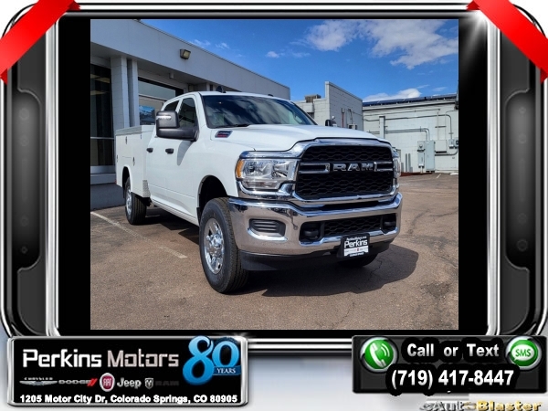 Factory MSRP: $58,655 Bright White Clearcoat 2024 Ram 2500 Tradesman 4WD 8-Speed Automatic 6.4L V8<br>ROYAL SERVICE BODY.<br>Check us out at www.perkinsmotors.com to see our specials! Since opening our doors in 1944, we’ve been proud to serve Colorado Springs, CO, and the surrounding areas of Pueblo, Castle Rock and Denver, CO. Throughout this time of being family owned for 80 years, we’ve maintained a firm commitment to our customers: to offer a wide selection of New Chrysler, Dodge, Fiat, Jeep, and Ram vehicles and quality pre-owned vehicles, and provide a quick, no-hassle car-buying process that ensures everyone drives off the lot satisfied with their purchase.<br><br>Chrome Appearance Group (Bright Front Bumper, Bright Rear Bumper, Center Hub, Chrome Grille Surround, Chrome Headlamp Bezels, Matte Black Mesh Grille w/Chrome, and Wheels: 18 x 8.0 Steel Chrome Clad), Heavy Duty Snow Plow Prep Group (220 Amp Alternator), Quick Order Package 2GA Tradesman, Tradesman Level 1 Equipment Group (Manual Folding Exterior Mirrors and Manual Telescoping Mirrors), 17 x 7.5 Steel Styled Wheels, 2 Way Rear Headrest Seat, 3.73 Axle Ratio, 4 Way Front Headrests, 4-Wheel Disc Brakes, 40/20/40 Split Bench Seat, 4G LTE Wi-Fi Hot Spot, 6 Speakers, 8.4 Touchscreen Display, ABS brakes, Active Noise Control System, Air Conditioning, All R1 Low Radios, All Radio Equipped Vehicles, AM/FM radio, Anti-Spin Differential Rear Axle, Apple CarPlay, Auto Power-Folding Mirrors, Black Exterior Mirrors, Bluetooth Handsfree Phone & Audio, Brake assist, Carpet Floor Covering, Compass, Connectivity - US/Canada, Cruise Control, Dash Pass Thru Wire Circuits, Delay-off headlights, Driver door bin, Dual front impact airbags, Dual front side impact airbags, Electric Shift-On-The-Fly Transfer Case, Electronic Stability Control, Electronically Controlled Throttle, Emergency communication system: SiriusXM Guardian, Exterior Mirrors Courtesy Lamps, Exterior Mirrors w/Heating Element, Exterior Mirrors w/Supplemental Signals, For Details, Visit DriveUconnect.com, For More Info, Call 800-643-2112, Forward & Reverse Utility Lights, Front & Rear Floor Mats, Front anti-roll bar, Front Center Armrest w/Storage, Front License Plate Bracket, Front reading lights, Fully automatic headlights, Global Telematics Box Module (TBM), Google Android Auto, GPS Antenna Input, Heavy Duty Vinyl 40/20/40 Split Bench Seat, I/P Mounted Auxiliary Switches, Illuminated entry, Integrated Center Stack Radio, Integrated Voice Command w/Bluetooth, Low tire pressure warning, Manual Adjust 4-Way Driver Seat, Manufacturer's Statement of Origin, Mirror Running Lights, Occupant sensing airbag, Outside temperature display, Overhead airbag, Overhead console, ParkView Rear Back-Up Camera, Passenger door bin, Passenger vanity mirror, Power Adjust Mirrors, Power Adjustable Convex Aux Mirrors, Power Heated Fold Telescope Mirrors, Power steering, Power Telescoping Mirrors, Power windows, Radio data system, Radio: Uconnect 3 w/5 Display, Radio: Uconnect 5 W w/8.4 Display, Rear anti-roll bar, Rear Folding Seat, Rear step bumper, Selectable Tire Fill Alert, SiriusXM Radio Service, SiriusXM Satellite Radio, Storage Tray, Tachometer, Tilt steering wheel, Tip Start, Tow Hooks, Traction control, Trailer Brake Control, Trailer Light Check, Variably intermittent wipers, and VoltmeteR. Sale price includes all manufacture's incentives and dealer discounts. Sale price not available on lease or compatible with special APR. $2000 - 2024 JR Denver BC Bonus Cash DECRA. Exp. 06/03/2024 $2000 - 2024 RAM Denver BC Commercial Bonus Cash DECR1X. Exp. 06/03/2024 Price includes $13,995 in dealer added accessories.