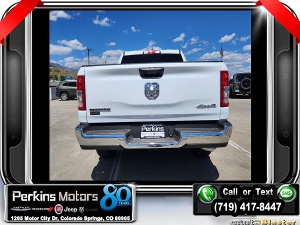 Factory MSRP: $53,595 $9,206 off MSRP! Priced below KBB Fair Purchase Price! Bright White Clearcoat 2024 Ram 1500 Big Horn/Lone Star 4WD 8-Speed Automatic 3.6L V6 24V VVT<br><br>Check us out at www.perkinsmotors.com to see our specials! Since opening our doors in 1944, we’ve been proud to serve Colorado Springs, CO, and the surrounding areas of Pueblo, Castle Rock and Denver, CO. Throughout this time of being family owned for 80 years, we’ve maintained a firm commitment to our customers: to offer a wide selection of New Chrysler, Dodge, Fiat, Jeep, and Ram vehicles and quality pre-owned vehicles, and provide a quick, no-hassle car-buying process that ensures everyone drives off the lot satisfied with their purchase.<br><br>Quick Order Package 23Z Big Horn (Big Horn Badge), 115V Auxiliary Power Outlet, 3 Rear Seat Head Restraints, 3.21 Rear Axle Ratio, 4 Way Front Headrests, 4-Wheel Disc Brakes, 48V Belt Starter Generator, 6 Speakers, ABS brakes, Air Conditioning, Alloy wheels, AM/FM radio, Brake assist, Bumpers: chrome, Cloth Bench Seat, Compass, Convex Wide-Angle Exterior Mirror Insert, Cruise Control, Delay-off headlights, Driver door bin, Dual front impact airbags, Dual front side impact airbags, Electronic Stability Control, Emergency communication system: RAM Connect, Exterior Mirrors w/Heating Element, For Details, Visit DriveUconnect.com, Front anti-roll bar, Front Center Armrest w/Storage, Front License Plate Bracket, Front reading lights, Front Seat Back Map Pockets, Front wheel independent suspension, Fully automatic headlights, Global Telematics Box Module (TBM), Heated door mirrors, Illuminated entry, Integrated Voice Command w/Bluetooth, Leather steering wheel, Low tire pressure warning, Manufacturer's Statement of Origin, MOPAR Front & Rear Rubber Floor Mats, Occupant sensing airbag, Outside temperature display, Overhead airbag, Overhead console, Panic alarm, ParkView Rear Back-Up Camera, Passenger door bin, Passenger vanity mirror, Power door mirrors, Power steering, Power windows, Radio data system, Radio: Uconnect 3 w/5 Display, RAM Grille Badge - Chrome, Rear 60/40 Folding Seat, Rear anti-roll bar, Rear seat center armrest, Rear step bumper, Remote keyless entry, Split folding rear seat, Steering wheel mounted audio controls, Tachometer, Telescoping steering wheel, Tilt steering wheel, Traction control, Trip computer, Variably intermittent wipers, Voltmeter, and Wheels: 18 x 8 Cast-Aluminum PainteD. Sale price includes all manufacture's incentives and dealer discounts. Sale price not available on lease or compatible with special APR. $1500 - 2024 JR Denver BC Bonus Cash DECRA. Exp. 06/03/2024 $1500 - 2024 JR SFS Bonus Cash DECR1. Exp. 06/03/2024 $2500 - 2024 DJR National Retail Consumer Cash 24CR1. Exp. 06/03/2024