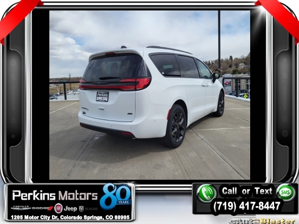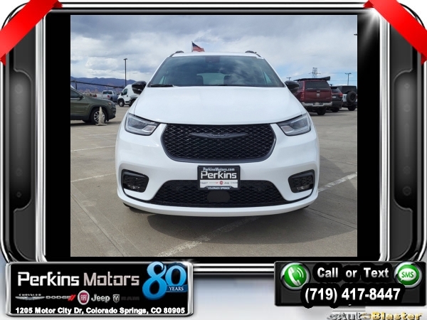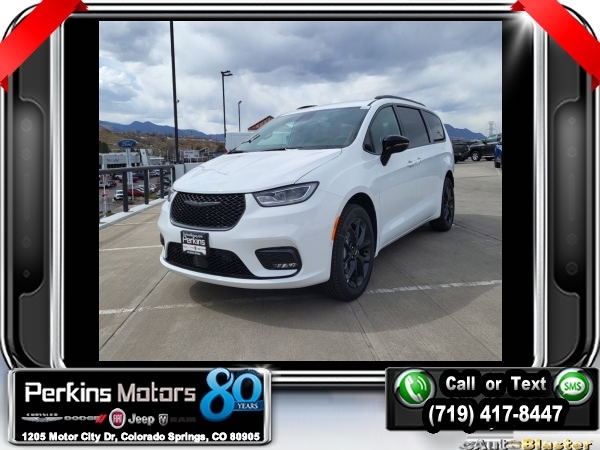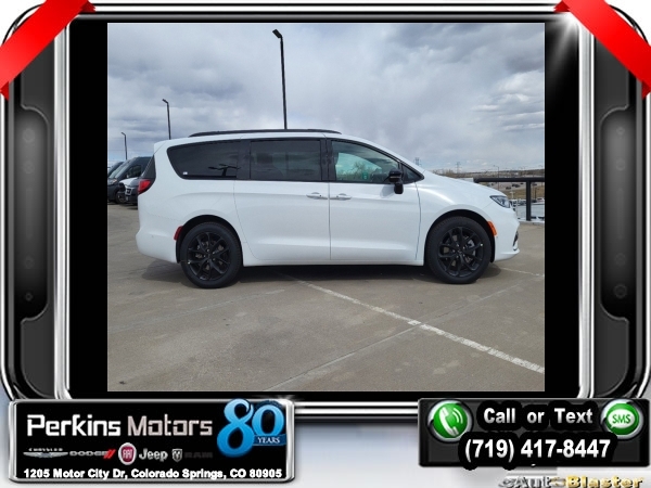 Factory MSRP: $49,290 $3,188 off MSRP! Bright White Clearcoat 2024 Chrysler Pacifica Touring L AWD 9-Speed 948TE Automatic 3.6L V6 24V VVT<br><br>Check us out at www.perkinsmotors.com to see our specials! Since opening our doors in 1944, we’ve been proud to serve Colorado Springs, CO, and the surrounding areas of Pueblo, Castle Rock and Denver, CO. Throughout this time of being family owned for 80 years, we’ve maintained a firm commitment to our customers: to offer a wide selection of New Chrysler, Dodge, Fiat, Jeep, and Ram vehicles and quality pre-owned vehicles, and provide a quick, no-hassle car-buying process that ensures everyone drives off the lot satisfied with their purchase.<br><br>Quick Order Package 27L, S Appearance Package (Anodized Ice Cave Accents, Anodized Ink Badging, Black Day Light Opening Moldings, Black Stow 'N Place Roof Rack, Caprice Leatherette w/S Logo, Piano Black Interior Accents, Pirelli Brand Tires, Premium Fascia Upper/Lower Grille w/Black Surround, Premium Rear Fascia Black, S Badge, and Wheels: 20 x 7.5 S-Model Aluminum Design 1), Safety Sphere (360 Surround View Camera System, Parallel & Perpendicular Park Assist w/Stop, and ParkSense Front/Rear Park Assist w/Stop), 10.1 Touchscreen Display, 18 x 7.5 Painted Aluminum Wheels, 3.73 Axle Ratio, 3rd row seats: split-bench, 4-Wheel Disc Brakes, 6 Speakers, ABS brakes, Air Conditioning, Alloy wheels, AM/FM radio: SiriusXM, Apple CarPlay, Apple CarPlay/Android Auto, Automatic temperature control, AWD Suspension, Black Seats, Brake assist, Bumpers: body-color, Caprice Leatherette Bucket Seats, Compass, Cruise Control, Delay-off headlights, Disassociated Touchscreen Display, Driver door bin, Driver vanity mirror, Driver's Seat Mounted Armrest, Dual front impact airbags, Dual front side impact airbags, Electronic Stability Control, Exterior Parking Camera Rear, Four wheel independent suspension, Front anti-roll bar, Front Bucket Seats, Front dual zone A/C, Front fog lights, Front reading lights, Fully automatic headlights, Google Android Auto, GPS Antenna Input, Heated door mirrors, Heated front seats, Heated steering wheel, Illuminated entry, Integrated Active Noise Cancellation, Integrated Center Stack Radio, Knee airbag, Low tire pressure warning, Manufacturer's Statement of Origin, Memory seat, Occupant sensing airbag, Outside temperature display, Overhead airbag, Overhead console, Panic alarm, Passenger door bin, Passenger seat mounted armrest, Passenger vanity mirror, Power door mirrors, Power driver seat, Power Liftgate, Power steering, Power windows, Radio data system, Radio: Uconnect 5 w/10.1 Display, Rain sensing wipers, Rear air conditioning, Rear reading lights, Rear window defroster, Rear window wiper, Reclining 3rd row seat, Remote keyless entry, Security system, Split folding rear seat, Spoiler, Steering wheel mounted audio controls, Tachometer, Telescoping steering wheel, Tilt steering wheel, Traction control, Trip computer, Turn signal indicator mirrors, USB Host Flip, Variably intermittent wipers, and Voltmeter. Sale price includes all manufacture's incentives and dealer discounts. Sale price not available on lease or compatible with special APR. $750 - 2024 CJR Bonus Cash 24CRA. Exp. 06/03/2024