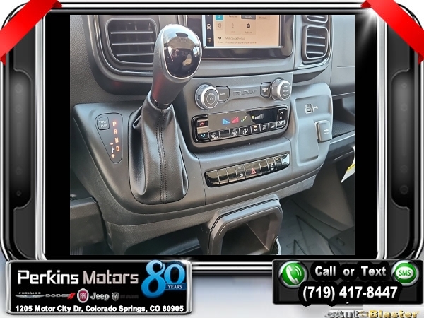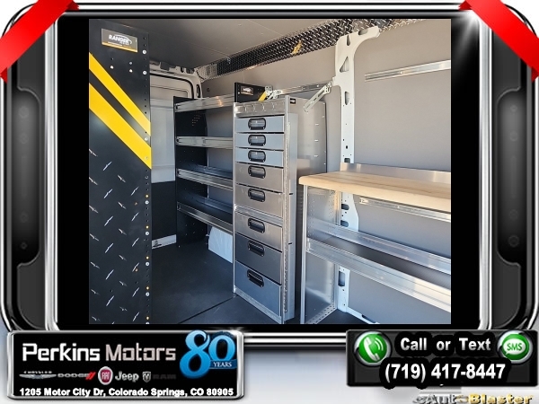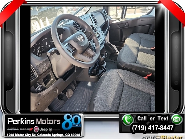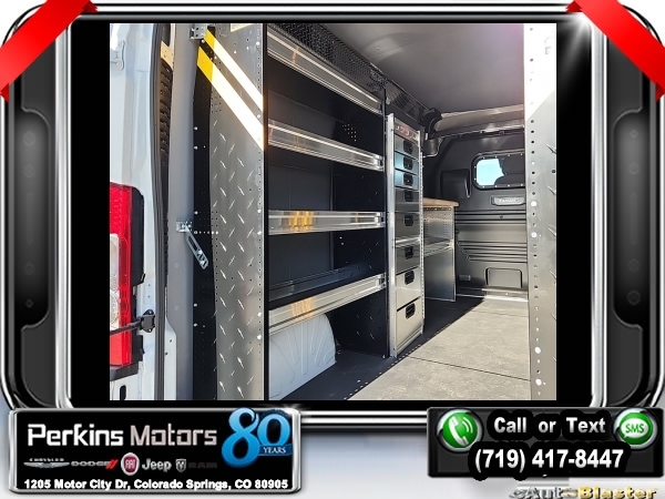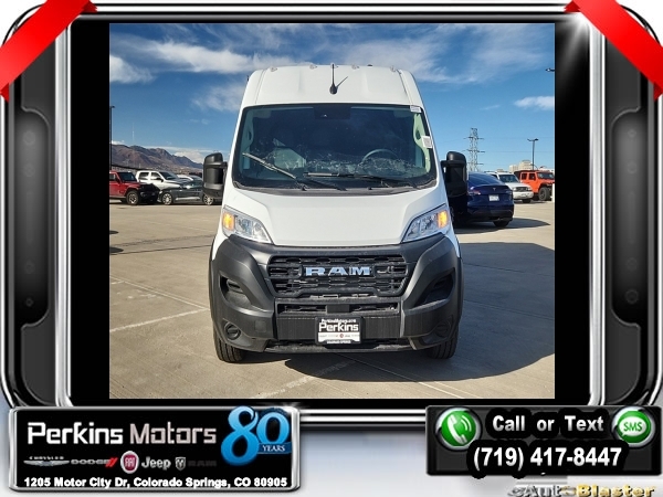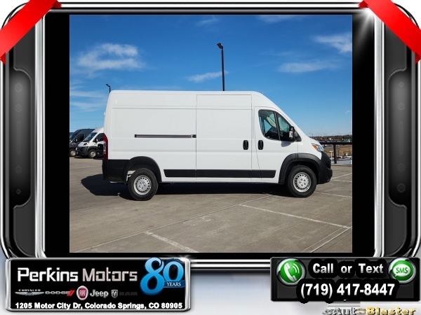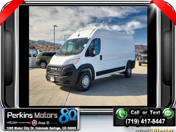 Factory MSRP: $54,340 Bright White Clearcoat 2024 Ram ProMaster 2500 High Roof FWD 9-Speed 948TE Automatic 3.6L V6 24V VVT<br>SHELVING WORKBENCH PARTITION INSULATED WALLS AND CEILING STABILIGRIP FLOORING.<br>Check us out at www.perkinsmotors.com to see our specials! Since opening our doors in 1944, we’ve been proud to serve Colorado Springs, CO, and the surrounding areas of Pueblo, Castle Rock and Denver, CO. Throughout this time of being family owned for 80 years, we’ve maintained a firm commitment to our customers: to offer a wide selection of New Chrysler, Dodge, Fiat, Jeep, and Ram vehicles and quality pre-owned vehicles, and provide a quick, no-hassle car-buying process that ensures everyone drives off the lot satisfied with their purchase.<br><br>Quick Order Package 22B Tradesman w/Pass Seat (4-Way Manual Adjust Front Passenger Seat and Passenger Bucket Seat), Upfitter's Prep Package (Auxiliary Switches and Upfitter Electronic Module (VSIM)), 4 Speakers, 4-Wheel Disc Brakes, 4.08 Axle Ratio, ABS brakes, Air Conditioning, AM/FM radio: SiriusXM, Apple CarPlay/Android Auto, Black/Gray Seats, Bodyside moldings, Brake assist, Cloth Bucket Seats, Driver door bin, Driver Seat Armrest, Driver's Seat Mounted Armrest, Electronic Stability Control, Exterior Mirrors w/Supplemental Signals, Front anti-roll bar, Front Bucket Seats, Front License Plate Bracket, Front reading lights, Front wheel independent suspension, Heavy Duty Suspension, Illuminated entry, Low tire pressure warning, Manufacturer's Statement of Origin, Outside temperature display, Overhead airbag, Overhead console, ParkView Rear Back-Up Camera, Passenger door bin, Passenger Double Seat, Power steering, Power windows, Radio: Uconnect 5 w/7 Display, Remote keyless entry, Steering wheel mounted audio controls, Tachometer, Telescoping steering wheel, Traction control, Trip computer, Turn signal indicator mirrors, Variably intermittent wipers, Wheel Center Cap, and Wheels: 16 x 6.0 Steel. Price includes $16,995 in dealer added accessories.