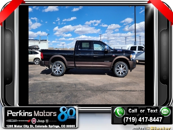 Factory MSRP: $98,775 $8,050 off MSRP! Diamond Black Crystal Pearlcoat 2024 Ram 2500 Longhorn 4WD 6-Speed Automatic Cummins 6.7L I6 Turbodiesel<br><br>Check us out at www.perkinsmotors.com to see our specials! Since opening our doors in 1944, we’ve been proud to serve Colorado Springs, CO, and the surrounding areas of Pueblo, Castle Rock and Denver, CO. Throughout this time of being family owned for 80 years, we’ve maintained a firm commitment to our customers: to offer a wide selection of New Chrysler, Dodge, Fiat, Jeep, and Ram vehicles and quality pre-owned vehicles, and provide a quick, no-hassle car-buying process that ensures everyone drives off the lot satisfied with their purchase.<br><br>Longhorn Level 1 Equipment Group (12 Touchscreen Display, 17 Speaker harman/kardon Premium Sound, 4G LTE Wi-Fi Hot Spot, Alexa Built-In, Apple CarPlay, Blind Spot & Cross Path Detection, Connected Travel & Traffic Services, Connectivity - US/Canada, Disassociated Touchscreen Display, For Details, Visit DriveUconnect.com, For More Info, Call 800-643-2112, Global Telematics Box Module (TBM), Google Android Auto, GPS Antenna Input, GPS Navigation, HD Radio, Integrated Voice Command w/Bluetooth, LED Bed Lighting, MOPAR Spray In Bedliner, Off-Road Information Pages, Power Deployable Running Boards, Radio: Uconnect 5 Nav w/12.0 Display, Ramcharger Wireless Charging Pad, Selectable Tire Fill Alert, SiriusXM Radio Service, SiriusXM w/360L, and Trailer Tow Pages), Protection Group, Quick Order Package 2HK Longhorn, Safety Group (Adaptive Cruise Control w/Stop, Adaptive Steering System, Full Speed Forward Collision Warning Plus, and Lane Keep Assist), Snow Chief Group (Anti-Spin Differential Rear Axle, Auxiliary Switches Prep, Clearance Lamps, Dash Pass Thru Wire Circuits, and I/P Mounted Auxiliary Switches), Tow Technology Plus Group (Digital 3.0 Rear View Auto Dimming Mirror and Trailer Reverse Steering Control), Towing Technology Group (CTR Stop Lamp w/Cargo View Camera, Surround View Camera System, and Trailer Reverse Guidance), 10 Speakers, 115V Auxiliary Rear Power Outlet, 2 Way Rear Headrest Seat, 220 Amp Alternator, 3.73 Axle Ratio, 4 Way Front Headrests, 4-Wheel Disc Brakes, 5th Wheel/Gooseneck Towing Prep Group, ABS brakes, Active Noise Control System, Adjustable pedals, Air Conditioning, Alloy wheels, AM/FM radio: SiriusXM with 360L, Apple CarPlay/Android Auto, Audio memory, Auto High-beam Headlights, Auto Level Rear Air Suspension, Auto-dimming door mirrors, Auto-dimming Rear-View mirror, Automatic temperature control, Brake assist, Bucket Seats, Bumpers: body-color, Center Hub, Compass, Cruise Control, Delay-off headlights, Driver door bin, Driver vanity mirror, Dual Alternators Rated At 440 Amps, Dual front impact airbags, Dual front side impact airbags, Electronic Stability Control, Electronically Controlled Throttle, Folding Flat Load Floor Storage, Front anti-roll bar, Front Bucket Seats, Front Center Armrest w/Storage, Front dual zone A/C, Front fog lights, Front License Plate Bracket, Front reading lights, Front Seat Back Map Pockets, Full Length Premium Upgraded Floor Console, Fully automatic headlights, Garage door transmitter, Genuine wood console insert, Genuine wood dashboard insert, Genuine wood door panel insert, Heated door mirrors, Heated Front Seats, Heated front seats, Heated rear seats, Heated Second Row Seats, Heated Steering Wheel, Heated steering wheel, High Back Seats, Illuminated entry, Leather steering wheel, Low tire pressure warning, Manufacturer's Statement of Origin, Memory seat, MOPAR Deployable Bed Step, Navigation System, Occupant sensing airbag, Outside temperature display, Overhead airbag, Overhead console, Panic alarm, ParkView Rear Back-Up Camera, Passenger door bin, Passenger vanity mirror, Pedal memory, Power 2-Way Driver Lumbar Adjust, Power 2-Way Passenger Lumbar Adjust, Power Adjust 8-Way Driver Seat, Power Adjust 8-Way Front Passenger Seat, Power door mirrors, Power driver seat, Power