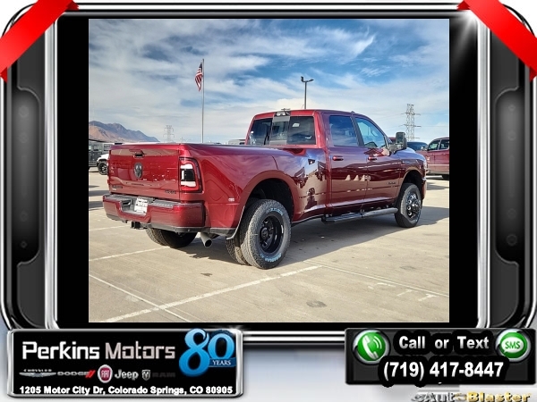 Factory MSRP: $96,430 $7,922 off MSRP! Delmonico Red Pearlcoat 2024 Ram 3500 Laramie 4WD Aisin 6-Speed Automatic I6<br><br>Check us out at www.perkinsmotors.com to see our specials! Since opening our doors in 1944, we’ve been proud to serve Colorado Springs, CO, and the surrounding areas of Pueblo, Castle Rock and Denver, CO. Throughout this time of being family owned for 80 years, we’ve maintained a firm commitment to our customers: to offer a wide selection of New Chrysler, Dodge, Fiat, Jeep, and Ram vehicles and quality pre-owned vehicles, and provide a quick, no-hassle car-buying process that ensures everyone drives off the lot satisfied with their purchase.<br><br>Bed Utility Group (LED Bed Lighting, MOPAR Deployable Bed Step, and MOPAR Spray In Bedliner), Heavy Duty Snow Plow Prep Group, Laramie Level 1 Equipment Group (12 Touchscreen Display, 18 x 8 Polished Aluminum Wheels, 2nd Row In Floor Storage Bins, 4G LTE Wi-Fi Hot Spot, Alexa Built-In, Apple CarPlay, Auto Adjust In Reverse Exterior Mirrors, Auto Dimming Exterior Passenger Mirror, Auto High Beam Headlamp Control, Auto Power-Folding Mirrors, Auto-Dimming Exterior Mirrors, Blind Spot & Cross Path Detection, Center Hub, Chrome Exterior Mirrors, Connected Travel & Traffic Services, Connectivity - US/Canada, Disassociated Touchscreen Display, Exterior Mirrors Courtesy Lamps, Exterior Mirrors w/Heating Element, Exterior Mirrors w/Memory, Exterior Mirrors w/Supplemental Signals, Foam Bottle Insert (Door Trim Panel), For Details Visit DriveUconnect.com, For More Info, Call 800-643-2112, Forward & Reverse Utility Lights, Front LED Fog Lamps, Global Telematics Box Module (TBM), Google Android Auto, GPS Antenna Input, GPS Navigation, HD Radio, Integrated Voice Command w/Bluetooth, LED Reflector Headlamps, Mirror Running Lights, Off-Road Information Pages, ParkSense Front/Rear Park Assist System, Power Adjust Mirrors, Power Adjustable Pedals w/Memory, Power Heat Fold Memory Telescopic Mirrors, Power Telescoping Mirrors, Power-Adjustable Convex Aux Mirrors, Radio: Uconnect 5 Nav w/12.0 Display, Rain Sensitive Windshield Wipers, Rear Power Sliding Window, Selectable Tire Fill Alert, SiriusXM Radio Service, SiriusXM w/360L, and Trailer Tow Pages), Night Edition (Black Exterior Truck Badging, Black Interior Accents, Black RAM Head Tailgate Badge, Black Tail Lamp Bezels, Body Color Grille Surround, Gloss Black Grille Billets/Accents, and Sport Performance Hood), Protection Group, Quick Order Package 21H Laramie, Safety Group (Adaptive Steering System, Full Speed Forward Collision Warning Plus, and Lane Keep Assist), Tow Technology Plus Group (Digital 3.0 Rear View Auto Dimming Mirror), Towing Technology Group (CTR Stop Lamp w/Cargo View Camera, Surround View Camera System, and Trailer Reverse Guidance), 10 Speakers, 115V Auxiliary Rear Power Outlet, 2 Way Rear Headrest Seat, 220 Amp Alternator, 3.73 Axle Ratio, 4 Way Front Headrests, 4-Wheel Disc Brakes, 50 Gallon Fuel Tank, 5th Wheel/Gooseneck Towing Prep Group, 6000# Front Axle w/Hub Ext, 8.4 Touchscreen Display, ABS brakes, Active Noise Control System, Air Conditioning, Alloy wheels, AM/FM radio: SiriusXM with 360L, Apple CarPlay/Android Auto, Auto Level Rear Air Suspension, Auto-dimming Rear-View mirror, Automatic temperature control, Box & Rear Fender Clearance Lamps, Brake assist, Bumpers: body-color, Clearance Lamps, Compass, Cruise Control, Delay-off headlights, Driver door bin, Driver vanity mirror, Dual front impact airbags, Dual front side impact airbags, Dual Rear Wheels, Electronic Stability Control, Electronically Controlled Throttle, Folding Flat Load Floor Storage, Front anti-roll bar, Front Center Armrest w/Storage, Front dual zone A/C, Front License Plate Bracket, Front reading lights, Front Seat Back Map Pockets, Fully automatic headlights, Garage door transmitter, Heated door mirrors, Heated Front Seats, Heated front seats, Heated Steering Wheel, Heated steering wheel, High Back Seats, Illuminated ent