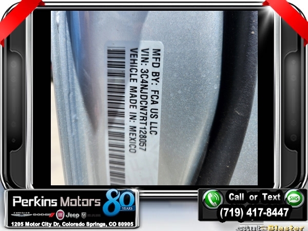 Factory MSRP: $38,930 $6,000 off MSRP! Priced below KBB Fair Purchase Price! Silver Zynith Metallic Clearcoat 2024 Jeep Compass Limited 4WD 8-Speed Automatic 2.0L I4 DOHC<br>4WD.<br>Check us out at www.perkinsmotors.com to see our specials! Since opening our doors in 1944, we’ve been proud to serve Colorado Springs, CO, and the surrounding areas of Pueblo, Castle Rock and Denver, CO. Throughout this time of being family owned for 80 years, we’ve maintained a firm commitment to our customers: to offer a wide selection of New Chrysler, Dodge, Fiat, Jeep, and Ram vehicles and quality pre-owned vehicles, and provide a quick, no-hassle car-buying process that ensures everyone drives off the lot satisfied with their purchase.<br><br>High Altitude Package (10.1 Touchscreen Display, 4G LTE Wi-Fi Hot Spot, Alexa Built-In, Black Day Light Opening Moldings, Body Color Door Claddings, Body Color Exterior Sill Moldings, Body Color Fascias, Body Color Roof, Body Color Wheel Flares, Cluster 10.25 TFT Color Display, Connected Travel & Traffic Services, Disassociated Touchscreen Display, For Details, Visit DriveUconnect.com, For More Info, Call 800-643-2112, Global Telematics Box Module (TBM), Gloss Black Surround/Neutral Gray Rings, GPS Navigation, HD Radio, Integrated Voice Command w/Bluetooth, LED Low/Highbeam Projector Headlamps, Liquid Chrome/Chainmail Hydro Accent, Neutral Gray Exterior Accents, Neutral Gray Exterior Badging, Power Front/Fixed Rear Full Sunroof, Premium Alpine Speaker System, Premium LED Fog Lamps, Premium Taillamps, Radio: Uconnect 5 Nav w/10.1 Display, SiriusXM Guardian - Included Trial (B), SiriusXM Radio Service, SiriusXM w/360L, Tungsten Accent Stitching, and Wheels: 19 x 7.5 Aluminum Painted), Quick Order Package 29G Limited, 4WD, 3.73 Final Drive Ratio, 4-Wheel Disc Brakes, 6 Speakers, ABS brakes, Air Conditioning, Alloy wheels, AM/FM radio: SiriusXM, Auto High-beam Headlights, Auto-dimming Rear-View mirror, Automatic temperature control, Brake assist, Bumpers: body-color, Compass, Cruise Control, Delay-off headlights, Driver door bin, Driver vanity mirror, Dual front impact airbags, Dual front side impact airbags, Electronic Stability Control, Emergency communication system: Jeep Connect, Four wheel independent suspension, Front anti-roll bar, Front Bucket Seats, Front Center Armrest w/Storage, Front dual zone A/C, Front fog lights, Front License Plate Bracket, Front reading lights, Fully automatic headlights, Heated door mirrors, Heated front seats, Heated steering wheel, Illuminated entry, Knee airbag, Leather Shift Knob, Leather steering wheel, Leatherette Seats, Low tire pressure warning, Occupant sensing airbag, Outside temperature display, Overhead airbag, Overhead console, Panic alarm, ParkView Rear Back-Up Camera, Passenger door bin, Passenger vanity mirror, Power door mirrors, Power driver seat, Power steering, Power windows, Radio: Uconnect 5 w/10.1 Display, Rain sensing wipers, Rear anti-roll bar, Rear seat center armrest, Rear window defroster, Rear window wiper, Remote keyless entry, Roof rack: rails only, Security system, Split folding rear seat, Spoiler, Steering wheel mounted audio controls, Tachometer, Telescoping steering wheel, Tilt steering wheel, Traction control, Trip computer, Turn signal indicator mirrors, Variably intermittent wipers, and Wheels: 18 x 7 Painted Diamond Cut AluminuM.<br><br>24/32 City/Highway MPG Sale price includes all manufacture's incentives and dealer discounts. Sale price not available on lease or compatible with special APR. $1000 - 2024 JR Denver BC Bonus Cash DECRA. Exp. 06/03/2024 $1500 - 2024 JR Chrysler Capital Bonus Cash DECR5. Exp. 06/03/2024 $500 - 2024 DJR National Retail Consumer Cash 24CR1. Exp. 06/03/2024