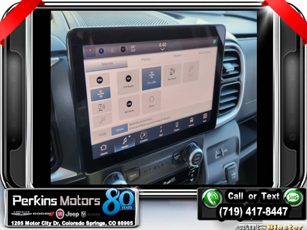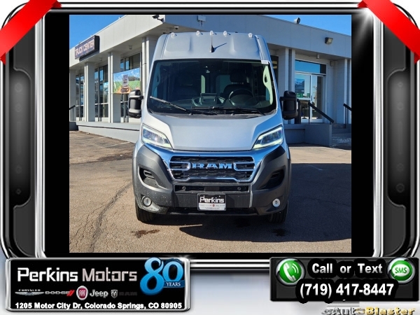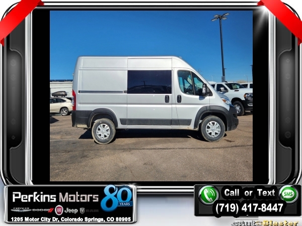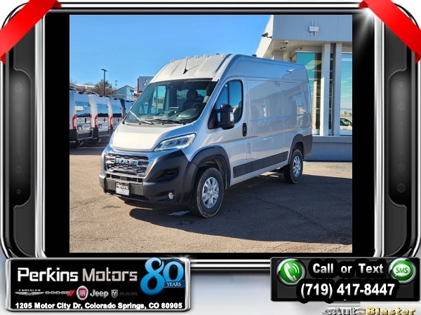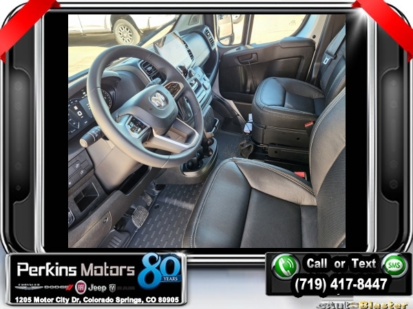 Factory MSRP: $61,120 $4,514 off MSRP! Bright Silver Metallic Clearcoat 2024 Ram ProMaster 1500 FWD 9-Speed 948TE Automatic 3.6L V6 24V VVT<br><br>Check us out at www.perkinsmotors.com to see our specials! Since opening our doors in 1944, we’ve been proud to serve Colorado Springs, CO, and the surrounding areas of Pueblo, Castle Rock and Denver, CO. Throughout this time of being family owned for 80 years, we’ve maintained a firm commitment to our customers: to offer a wide selection of New Chrysler, Dodge, Fiat, Jeep, and Ram vehicles and quality pre-owned vehicles, and provide a quick, no-hassle car-buying process that ensures everyone drives off the lot satisfied with their purchase.<br><br>Leather Interior Group (6-Way Manual Adjust Driver Seat, Black/Gray Seats, Driver Seat Armrest, Driver Swivel Seat, Leather Trimmed Bucket Seats, Leather Wrapped Steering Wheel, Manual 2-Way Driver Lumbar Adjust, Manual 2-Way Passenger Lumbar Adjust, Passenger Bucket Seat, Passenger Seat Armrest, and Passenger Swivel Seat), Quick Order Package 22H SLT+ (100 Amp Battery, 115V Auxiliary Power Outlet, 12V Rear Auxiliary Power Outlet, 220 Amp Alternator, 6-Way Manual Adjust Front Passenger Seat, Auto High Beam Headlamp Control, Automatic Headlamps, Blind Spot & Cross Path Detection, Connected Travel & Traffic Services, Cowl Aesthetic Cover, Digital Rearview Mirror w/Autodim, Exterior Mirrors w/Heating Element, Front LED Fog Lamps, GPS Navigation, HD Radio, Instrument Panel Bright Bezels, Intelligent Speed Assist (ISA), Lane Departure Warning Plus, LED Daytime Running Headlamps, LED Reflector Headlamps, ParkSense Front/Rear Park Assist System, Passive Entry, Power Adjust Mirrors, Power Folding/Heated Mirrors, Power-Adjustable Convex Aux Mirrors, Radio: Uconnect 5 Nav w/10.1 Display, Rain Sensitive Windshield Wipers, Remote Start System, Security Alarm, SiriusXM w/360L, Traffic Sign Information, Wheels: 16 x 6.0 Aluminum Painted Silver, and Wireless Charging Pad), Rear Heater - A/C Prep Package, 4 Speakers, 4-Wheel Disc Brakes, 4.08 Axle Ratio, ABS brakes, Air Conditioning, AM/FM radio: SiriusXM, Apple CarPlay/Android Auto, Black Seats, Bodyside moldings, Brake assist, Class IV Receiver Hitch, Cloth Bucket Seats, Deep Tint Sunscreen Glass, Driver door bin, Driver's Seat Mounted Armrest, Electronic Stability Control, Exterior Mirrors w/Supplemental Signals, Front anti-roll bar, Front Bucket Seats, Front License Plate Bracket, Front reading lights, Front wheel independent suspension, Illuminated entry, Low tire pressure warning, Manufacturer's Statement of Origin, Medium Duty Suspension, Outside temperature display, Overhead airbag, Overhead console, ParkView Rear Back-Up Camera, Passenger door bin, Passenger Sliding Door w/Window (Polycarb), Polycarbonate Window Material, Power steering, Power windows, Radio: Uconnect 5 w/7 Display, Rear Hinged Doors w/Fixed Glass, Rear View Day/Night Mirror, Rear Window Defroster, Remote keyless entry, Steering wheel mounted audio controls, Tachometer, Telescoping steering wheel, Traction control, Trip computer, Turn signal indicator mirrors, Variably intermittent wipers, Wheel Center Cap, and Wheels: 16 x 6.0 Steel.