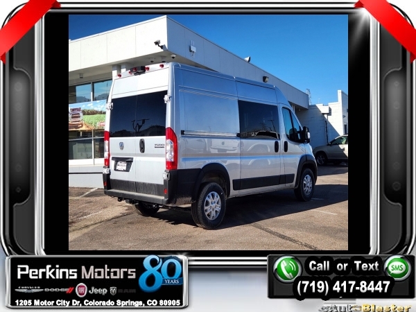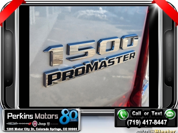 Factory MSRP: $61,120 $4,514 off MSRP! Bright Silver Metallic Clearcoat 2024 Ram ProMaster 1500 FWD 9-Speed 948TE Automatic 3.6L V6 24V VVT<br><br>Check us out at www.perkinsmotors.com to see our specials! Since opening our doors in 1944, we’ve been proud to serve Colorado Springs, CO, and the surrounding areas of Pueblo, Castle Rock and Denver, CO. Throughout this time of being family owned for 80 years, we’ve maintained a firm commitment to our customers: to offer a wide selection of New Chrysler, Dodge, Fiat, Jeep, and Ram vehicles and quality pre-owned vehicles, and provide a quick, no-hassle car-buying process that ensures everyone drives off the lot satisfied with their purchase.<br><br>Leather Interior Group (6-Way Manual Adjust Driver Seat, Black/Gray Seats, Driver Seat Armrest, Driver Swivel Seat, Leather Trimmed Bucket Seats, Leather Wrapped Steering Wheel, Manual 2-Way Driver Lumbar Adjust, Manual 2-Way Passenger Lumbar Adjust, Passenger Bucket Seat, Passenger Seat Armrest, and Passenger Swivel Seat), Quick Order Package 22H SLT+ (100 Amp Battery, 115V Auxiliary Power Outlet, 12V Rear Auxiliary Power Outlet, 220 Amp Alternator, 6-Way Manual Adjust Front Passenger Seat, Auto High Beam Headlamp Control, Automatic Headlamps, Blind Spot & Cross Path Detection, Connected Travel & Traffic Services, Cowl Aesthetic Cover, Digital Rearview Mirror w/Autodim, Exterior Mirrors w/Heating Element, Front LED Fog Lamps, GPS Navigation, HD Radio, Instrument Panel Bright Bezels, Intelligent Speed Assist (ISA), Lane Departure Warning Plus, LED Daytime Running Headlamps, LED Reflector Headlamps, ParkSense Front/Rear Park Assist System, Passive Entry, Power Adjust Mirrors, Power Folding/Heated Mirrors, Power-Adjustable Convex Aux Mirrors, Radio: Uconnect 5 Nav w/10.1 Display, Rain Sensitive Windshield Wipers, Remote Start System, Security Alarm, SiriusXM w/360L, Traffic Sign Information, Wheels: 16 x 6.0 Aluminum Painted Silver, and Wireless Charging Pad), Rear Heater - A/C Prep Package, 4 Speakers, 4-Wheel Disc Brakes, 4.08 Axle Ratio, ABS brakes, Air Conditioning, AM/FM radio: SiriusXM, Apple CarPlay/Android Auto, Black Seats, Bodyside moldings, Brake assist, Class IV Receiver Hitch, Cloth Bucket Seats, Deep Tint Sunscreen Glass, Driver door bin, Driver's Seat Mounted Armrest, Electronic Stability Control, Exterior Mirrors w/Supplemental Signals, Front anti-roll bar, Front Bucket Seats, Front License Plate Bracket, Front reading lights, Front wheel independent suspension, Illuminated entry, Low tire pressure warning, Manufacturer's Statement of Origin, Medium Duty Suspension, Outside temperature display, Overhead airbag, Overhead console, ParkView Rear Back-Up Camera, Passenger door bin, Passenger Sliding Door w/Window (Polycarb), Polycarbonate Window Material, Power steering, Power windows, Radio: Uconnect 5 w/7 Display, Rear Hinged Doors w/Fixed Glass, Rear View Day/Night Mirror, Rear Window Defroster, Remote keyless entry, Steering wheel mounted audio controls, Tachometer, Telescoping steering wheel, Traction control, Trip computer, Turn signal indicator mirrors, Variably intermittent wipers, Wheel Center Cap, and Wheels: 16 x 6.0 Steel.