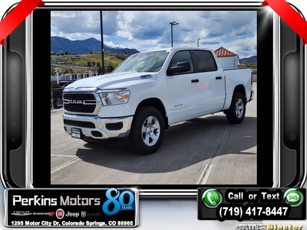 Factory MSRP: $53,595 $9,206 off MSRP! Priced below KBB Fair Purchase Price! Bright White Clearcoat 2024 Ram 1500 Big Horn/Lone Star 4WD 8-Speed Automatic 3.6L V6 24V VVT<br><br>Check us out at www.perkinsmotors.com to see our specials! Since opening our doors in 1944, we’ve been proud to serve Colorado Springs, CO, and the surrounding areas of Pueblo, Castle Rock and Denver, CO. Throughout this time of being family owned for 80 years, we’ve maintained a firm commitment to our customers: to offer a wide selection of New Chrysler, Dodge, Fiat, Jeep, and Ram vehicles and quality pre-owned vehicles, and provide a quick, no-hassle car-buying process that ensures everyone drives off the lot satisfied with their purchase.<br><br>Quick Order Package 23Z Big Horn (Big Horn Badge), 115V Auxiliary Power Outlet, 3 Rear Seat Head Restraints, 3.21 Rear Axle Ratio, 4 Way Front Headrests, 4-Wheel Disc Brakes, 48V Belt Starter Generator, 6 Speakers, ABS brakes, Air Conditioning, Alloy wheels, AM/FM radio, Brake assist, Bumpers: chrome, Cloth Bench Seat, Compass, Convex Wide-Angle Exterior Mirror Insert, Cruise Control, Delay-off headlights, Driver door bin, Dual front impact airbags, Dual front side impact airbags, Electronic Stability Control, Emergency communication system: RAM Connect, Exterior Mirrors w/Heating Element, For Details, Visit DriveUconnect.com, Front anti-roll bar, Front Center Armrest w/Storage, Front License Plate Bracket, Front reading lights, Front Seat Back Map Pockets, Front wheel independent suspension, Fully automatic headlights, Global Telematics Box Module (TBM), Heated door mirrors, Illuminated entry, Integrated Voice Command w/Bluetooth, Leather steering wheel, Low tire pressure warning, Manufacturer's Statement of Origin, MOPAR Front & Rear Rubber Floor Mats, Occupant sensing airbag, Outside temperature display, Overhead airbag, Overhead console, Panic alarm, ParkView Rear Back-Up Camera, Passenger door bin, Passenger vanity mirror, Power door mirrors, Power steering, Power windows, Radio data system, Radio: Uconnect 3 w/5 Display, RAM Grille Badge - Chrome, Rear 60/40 Folding Seat, Rear anti-roll bar, Rear seat center armrest, Rear step bumper, Remote keyless entry, Split folding rear seat, Steering wheel mounted audio controls, Tachometer, Telescoping steering wheel, Tilt steering wheel, Traction control, Trip computer, Variably intermittent wipers, Voltmeter, and Wheels: 18 x 8 Cast-Aluminum PainteD. Sale price includes all manufacture's incentives and dealer discounts. Sale price not available on lease or compatible with special APR. $1500 - 2024 JR Denver BC Bonus Cash DECRA. Exp. 06/03/2024 $1500 - 2024 JR SFS Bonus Cash DECR1. Exp. 06/03/2024 $2500 - 2024 DJR National Retail Consumer Cash 24CR1. Exp. 06/03/2024