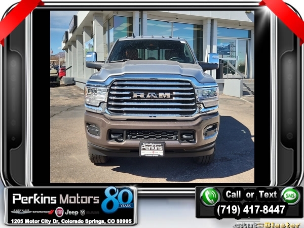 Factory MSRP: $98,825 $8,054 off MSRP! Billet Silver Metallic Clearcoat 2024 Ram 2500 Longhorn 4WD 6-Speed Automatic Cummins 6.7L I6 Turbodiesel<br><br>Check us out at www.perkinsmotors.com to see our specials! Since opening our doors in 1944, we’ve been proud to serve Colorado Springs, CO, and the surrounding areas of Pueblo, Castle Rock and Denver, CO. Throughout this time of being family owned for 80 years, we’ve maintained a firm commitment to our customers: to offer a wide selection of New Chrysler, Dodge, Fiat, Jeep, and Ram vehicles and quality pre-owned vehicles, and provide a quick, no-hassle car-buying process that ensures everyone drives off the lot satisfied with their purchase.<br><br>Longhorn Level 1 Equipment Group (12 Touchscreen Display, 17 Speaker harman/kardon Premium Sound, 4G LTE Wi-Fi Hot Spot, Alexa Built-In, Apple CarPlay, Blind Spot & Cross Path Detection, Connected Travel & Traffic Services, Connectivity - US/Canada, Disassociated Touchscreen Display, For Details, Visit DriveUconnect.com, For More Info, Call 800-643-2112, Global Telematics Box Module (TBM), Google Android Auto, GPS Antenna Input, GPS Navigation, HD Radio, Integrated Voice Command w/Bluetooth, LED Bed Lighting, MOPAR Spray In Bedliner, Off-Road Information Pages, Power Deployable Running Boards, Radio: Uconnect 5 Nav w/12.0 Display, Ramcharger Wireless Charging Pad, Selectable Tire Fill Alert, SiriusXM Radio Service, SiriusXM w/360L, and Trailer Tow Pages), Protection Group, Quick Order Package 2HK Longhorn, Safety Group (Adaptive Cruise Control w/Stop, Adaptive Steering System, Full Speed Forward Collision Warning Plus, and Lane Keep Assist), Snow Chief Group (Anti-Spin Differential Rear Axle, Auxiliary Switches Prep, Clearance Lamps, Dash Pass Thru Wire Circuits, and I/P Mounted Auxiliary Switches), Tow Technology Plus Group (Digital 3.0 Rear View Auto Dimming Mirror and Trailer Reverse Steering Control), Towing Technology Group (CTR Stop Lamp w/Cargo View Camera, Surround View Camera System, and Trailer Reverse Guidance), 10 Speakers, 115V Auxiliary Rear Power Outlet, 2 Way Rear Headrest Seat, 220 Amp Alternator, 3.73 Axle Ratio, 4 Way Front Headrests, 4-Wheel Disc Brakes, 5th Wheel/Gooseneck Towing Prep Group, ABS brakes, Active Noise Control System, Adjustable pedals, Air Conditioning, Alloy wheels, AM/FM radio: SiriusXM with 360L, Apple CarPlay/Android Auto, Audio memory, Auto High-beam Headlights, Auto Level Rear Air Suspension, Auto-dimming door mirrors, Auto-dimming Rear-View mirror, Automatic temperature control, Brake assist, Bucket Seats, Bumpers: body-color, Center Hub, Compass, Cruise Control, Delay-off headlights, Driver door bin, Driver vanity mirror, Dual Alternators Rated At 440 Amps, Dual front impact airbags, Dual front side impact airbags, Electronic Stability Control, Electronically Controlled Throttle, Folding Flat Load Floor Storage, Front anti-roll bar, Front Bucket Seats, Front Center Armrest w/Storage, Front dual zone A/C, Front fog lights, Front License Plate Bracket, Front reading lights, Front Seat Back Map Pockets, Full Length Premium Upgraded Floor Console, Fully automatic headlights, Garage door transmitter, Genuine wood console insert, Genuine wood dashboard insert, Genuine wood door panel insert, Heated door mirrors, Heated Front Seats, Heated front seats, Heated rear seats, Heated Second Row Seats, Heated Steering Wheel, Heated steering wheel, High Back Seats, Illuminated entry, Leather steering wheel, Low tire pressure warning, Manufacturer's Statement of Origin, Memory seat, MOPAR Deployable Bed Step, Navigation System, Occupant sensing airbag, Outside temperature display, Overhead airbag, Overhead console, Panic alarm, ParkView Rear Back-Up Camera, Passenger door bin, Passenger vanity mirror, Pedal memory, Power 2-Way Driver Lumbar Adjust, Power 2-Way Passenger Lumbar Adjust, Power Adjust 8-Way Driver Seat, Power Adjust 8-Way Front Passenger Seat, Power door mirrors, Power driver seat, Power