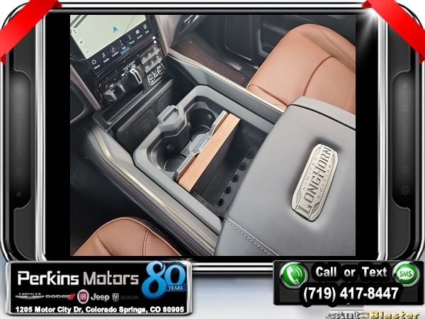 Factory MSRP: $100,435 $8,186 off MSRP! Diamond Black Crystal Pearlcoat 2024 Ram 2500 Longhorn 4WD 6-Speed Automatic Cummins 6.7L I6 Turbodiesel<br><br>Check us out at www.perkinsmotors.com to see our specials! Since opening our doors in 1944, we’ve been proud to serve Colorado Springs, CO, and the surrounding areas of Pueblo, Castle Rock and Denver, CO. Throughout this time of being family owned for 80 years, we’ve maintained a firm commitment to our customers: to offer a wide selection of New Chrysler, Dodge, Fiat, Jeep, and Ram vehicles and quality pre-owned vehicles, and provide a quick, no-hassle car-buying process that ensures everyone drives off the lot satisfied with their purchase.<br><br>Cold Weather Group (Engine Block Heater), Longhorn Level 1 Equipment Group (12 Touchscreen Display, 4G LTE Wi-Fi Hot Spot, Alexa Built-In, Apple CarPlay, Blind Spot & Cross Path Detection, Connected Travel & Traffic Services, Connectivity - US/Canada, Disassociated Touchscreen Display, For Details, Visit DriveUconnect.com, For More Info, Call 800-643-2112, Global Telematics Box Module (TBM), Google Android Auto, GPS Antenna Input, GPS Navigation, HD Radio, Integrated Voice Command w/Bluetooth, Off-Road Information Pages, Radio: Uconnect 5 Nav w/12.0 Display, Selectable Tire Fill Alert, SiriusXM Radio Service, SiriusXM w/360L, and Trailer Tow Pages), Protection Group, Quick Order Package 2HK Longhorn, Safety Group (Adaptive Steering System, Full Speed Forward Collision Warning Plus, and Lane Keep Assist), Snow Chief Group (Anti-Spin Differential Rear Axle, Auxiliary Switches Prep, and Clearance Lamps), Tow Technology Plus Group (Digital 3.0 Rear View Auto Dimming Mirror), Towing Technology Group (Center Stop Lamp w/Cargo View Camera), 10 Speakers, 115V Auxiliary Rear Power Outlet, 2 Way Rear Headrest Seat, 220 Amp Alternator, 3.73 Axle Ratio, 4 Way Front Headrests, 4-Wheel Disc Brakes, 5th Wheel/Gooseneck Towing Prep Group, ABS brakes, Active Noise Control System, Air Conditioning, Alloy wheels, AM/FM radio: SiriusXM with 360L, Apple CarPlay/Android Auto, Audio memory, Auto High-beam Headlights, Auto Level Rear Air Suspension, Auto-dimming door mirrors, Auto-dimming Rear-View mirror, Automatic temperature control, Brake assist, Bucket Seats, Bumpers: body-color, Center Hub, Compass, Cruise Control, Delay-off headlights, Driver door bin, Driver vanity mirror, Dual Alternators Rated At 440 Amps, Dual front impact airbags, Dual front side impact airbags, Electronic Stability Control, Electronically Controlled Throttle, Front anti-roll bar, Front Bucket Seats, Front Center Armrest w/Storage, Front dual zone A/C, Front fog lights, Front License Plate Bracket, Front reading lights, Front Seat Back Map Pockets, Full Length Premium Upgraded Floor Console, Fully automatic headlights, Garage door transmitter, Genuine wood console insert, Genuine wood dashboard insert, Genuine wood door panel insert, Heated door mirrors, Heated Front Seats, Heated front seats, Heated rear seats, Heated Second Row Seats, Heated Steering Wheel, Heated steering wheel, High Back Seats, Illuminated entry, Leather steering wheel, Low tire pressure warning, Manufacturer's Statement of Origin, Memory seat, MOPAR Deployable Bed Step, Navigation System, Occupant sensing airbag, Outside temperature display, Overhead airbag, Overhead console, Panic alarm, ParkView Rear Back-Up Camera, Passenger door bin, Passenger vanity mirror, Power 2-Way Driver Lumbar Adjust, Power 2-Way Passenger Lumbar Adjust, Power Adjust 8-Way Driver Seat, Power Adjust 8-Way Front Passenger Seat, Power door mirrors, Power driver seat, Power passenger seat, Power steering, Power Sunroof, Power windows, Premium Filigree Leather Seats, Radio data system, Radio: Uconnect 5 Nav w/8.4 Display, Radio/Driver Seat/Mirrors/Pedals Memory, Rain sensing wipers, Rear 60/40 Folding Seat, Rear anti-roll bar, Rear reading lights, Rear seat center armrest, Rear step bumper, Rear window defroster, Remote keyless