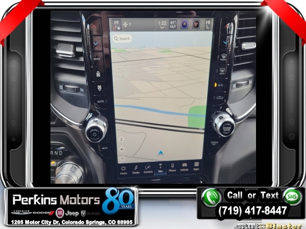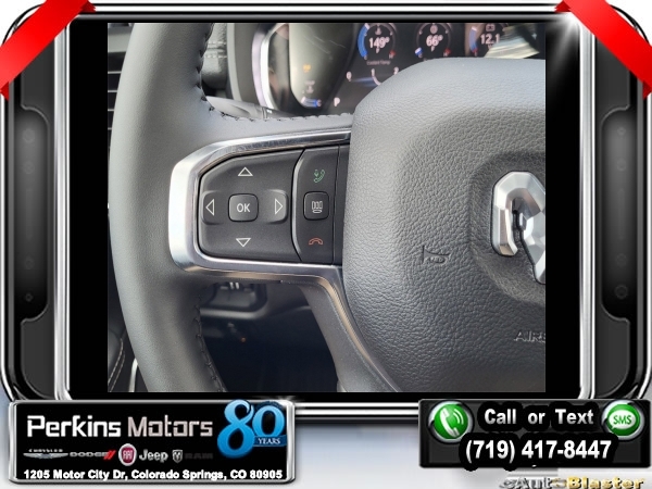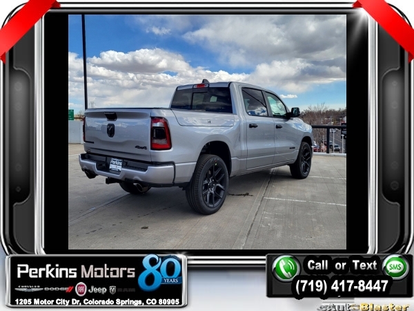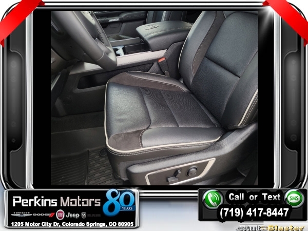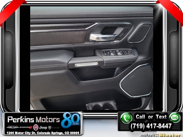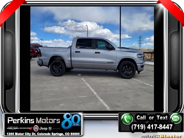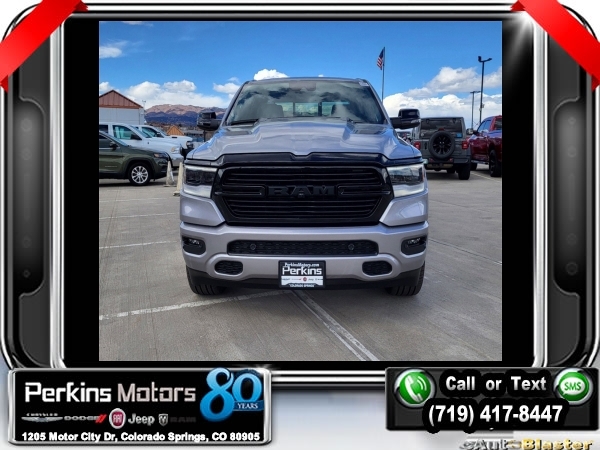 Factory MSRP: $76,885 $9,346 off MSRP! Billet Silver Metallic Clearcoat 2024 Ram 1500 Laramie 4WD 8-Speed Automatic HEMI 5.7L V8 Multi Displacement VVT eTorque<br><br>Check us out at www.perkinsmotors.com to see our specials! Since opening our doors in 1944, we’ve been proud to serve Colorado Springs, CO, and the surrounding areas of Pueblo, Castle Rock and Denver, CO. Throughout this time of being family owned for 80 years, we’ve maintained a firm commitment to our customers: to offer a wide selection of New Chrysler, Dodge, Fiat, Jeep, and Ram vehicles and quality pre-owned vehicles, and provide a quick, no-hassle car-buying process that ensures everyone drives off the lot satisfied with their purchase.<br><br>Advanced Safety Group (Adaptive Cruise Control w/Stop & Go, Auto High Beam Headlamp Control, Lane Keep Assist, Parallel & Perp Park Assist w/Stop, Pedestrian Emergency Braking, and Surround View Camera System), Bed Utility Group (MOPAR 4 Adjustable Cargo Tie-Down Hooks, MOPAR Spray In Bedliner, and Pick-Up Box Lighting), Laramie Level B Equipment Group (2nd Row In Floor Storage Bins, 4G LTE Wi-Fi Hot Spot, Apple CarPlay, Blind Spot & Cross Path Detection, Connected Travel & Traffic Services, Connectivity - US/Canada, Electric Shift-On-Demand Transfer Case, Foam Bottle Insert (Door Trim Panel), For Details, Visit DriveUconnect.com, For More Info, Call 800-643-2112, Front Door Accent Lighting, Front LED Fog Lamps, Global Telematics Box Module (TBM), Google Android Auto, GPS Navigation, harman/kardon 19 Speaker Premium Sound, HD Radio, Heated Second Row Seats, Integrated Voice Command w/Bluetooth, LED Reflector Headlamps, Power Adjustable Pedals w/Memory, Radio: Uconnect 5 Nav w/12.0 Display, Rain Sensitive Windshield Wipers, Rear 60/40 Folding Split Recline Seat, Rear Door Accent Lighting, Rear Power Sliding Window, Rear Underseat Compartment Storage, Rear Window Defroster, Remote Tailgate Release, SiriusXM Radio Service, SiriusXM w/360L, and USB Host Flip), Night Edition (3 Rear Seat Head Restraints, 4 Way Front Headrests, Accent Color Door Handles, Accent Color Premium Power Mirrors, Auto-Dimming Exterior Driver Mirror, Black Exterior Truck Badging, Black Headlamp Bezels, Black Interior Accents, Black Painted Exterior Mirrors Caps, Body Color Front Bumper, Body Color Rear Bumper w/Step Pads, Bucket Seats, Convex Wide-Angle Exterior Mirror Insert, Driver Seat Memory, Dual Exhaust w/Black Tips, Exterior Mirrors Courtesy Lamps, Exterior Mirrors w/Heating Element, Exterior Mirrors w/Memory, Exterior Mirrors w/Supplemental Signals, Front Seat Back Map Pockets, Full Length Upgraded Floor Console, Grille Surround 3 Black Texture 2 Black, Heated Front Seats, Heated Steering Wheel, Leather Trimmed Bucket Seats, Power 2-Way Driver Lumbar Adjust, Power 2-Way Passenger Lumbar Adjust, Power 8-Way Driver & Passenger Seats, Power-Folding Mirrors, RAM Grille Badge - Black, Rear 60/40 Folding Seat, Sport Performance Hood, Ventilated Front Seats, and Wheels: 22 x 9 Forged Aluminum), Quick Order Package 27H Laramie, 10 Speakers, 3.21 Rear Axle Ratio, 33 Gallon Fuel Tank, 4-Wheel Disc Brakes, 48V Belt Starter Generator, ABS brakes, Air Conditioning, Alloy wheels, AM/FM radio: SiriusXM with 360L, Anti-Spin Differential Rear Axle, Apple CarPlay/Android Auto, Audio memory, Auto-dimming door mirrors, Auto-dimming Rear-View mirror, Automatic temperature control, Brake assist, Bumpers: chrome, Chrome Exterior Mirrors, Class IV Receiver Hitch, Cluster 12 TFT Color Display, Compass, Cruise Control, Delay-off headlights, Driver door bin, Driver vanity mirror, Dual front impact airbags, Dual front side impact airbags, Electronic Stability Control, Exterior 115V AC Outlet, Front anti-roll bar, Front Center Armrest w/Storage, Front dual zone A/ Sale price includes all manufacture's incentives and dealer discounts. Sale price not available on lease or compatible with special APR. $2500 - 2024 DJR National Retail Consumer Cash 24CR1. Exp. 0