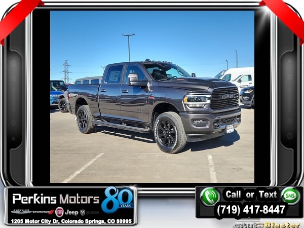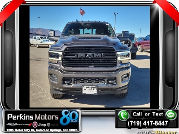 Factory MSRP: $91,955 $7,547 off MSRP! Granite Crystal Metallic Clearcoat 2024 Ram 2500 Laramie 4WD 6-Speed Automatic Cummins 6.7L I6 Turbodiesel<br><br>Check us out at www.perkinsmotors.com to see our specials! Since opening our doors in 1944, we’ve been proud to serve Colorado Springs, CO, and the surrounding areas of Pueblo, Castle Rock and Denver, CO. Throughout this time of being family owned for 80 years, we’ve maintained a firm commitment to our customers: to offer a wide selection of New Chrysler, Dodge, Fiat, Jeep, and Ram vehicles and quality pre-owned vehicles, and provide a quick, no-hassle car-buying process that ensures everyone drives off the lot satisfied with their purchase.<br><br>Bed Utility Group (LED Bed Lighting, MOPAR Deployable Bed Step, and MOPAR Spray In Bedliner), Cold Weather Group (Engine Block Heater and MOPAR Winter Front Grille Cover), Heavy Duty Snow Plow Prep Group (220 Amp Alternator), Laramie Level 1 Equipment Group (12 Touchscreen Display, 2nd Row In Floor Storage Bins, 4G LTE Wi-Fi Hot Spot, Alexa Built-In, Apple CarPlay, Auto Adjust In Reverse Exterior Mirrors, Auto Dim Exterior Mirror, Auto High Beam Headlamp Control, Auto Power-Folding Mirrors, Auto-Dimming Exterior Passenger Mirror, Blind Spot & Cross Path Detection, Center Hub, Chrome Exterior Mirrors, Connected Travel & Traffic Services, Connectivity - US/Canada, Disassociated Touchscreen Display, Exterior Mirrors Courtesy Lamps, Exterior Mirrors w/Heating Element, Exterior Mirrors w/Memory, Exterior Mirrors w/Supplemental Signals, Foam Bottle Insert (Door Trim Panel), For Details, Visit DriveUconnect.com, For More Info, Call 800-643-2112, Forward & Reverse Utility Lights, Front LED Fog Lamps, Global Telematics Box Module (TBM), Google Android Auto, GPS Antenna Input, GPS Navigation, HD Radio, Integrated Voice Command w/Bluetooth, LED Reflector Headlamps, LED Tail Lamps, Mirror Running Lights, Off-Road Information Pages, ParkSense Front/Rear Park Assist System, Power Adjust Mirrors, Power Adjustable Convex Aux Mirrors, Power Adjustable Pedals w/Memory, Power Heated Fold Telescopic Mirrors w/Memory, Power Telescoping Mirrors, Radio: Uconnect 5 Nav w/12.0 Display, Rain Sensitive Windshield Wipers, Rear Power Sliding Window, Rear Window Defroster, Remote Tailgate Release, Selectable Tire Fill Alert, SiriusXM Radio Service, SiriusXM w/360L, Trailer Tow Pages, and Wheels: 18 x 8.0 Polished Aluminum), Night Edition (Black Exterior Truck Badging, Black Headlamp Bezels, Black Interior Accents, Black Ram Head Tailgate Badge, Black Tail Lamp Bezels, Black Wheel Center Hub, Body Color Grille Surround, Gloss Black Grille Billets/Accents, Sport Performance Hood, and Wheels: 20 x 8.0 Black Painted Aluminum), Protection Group (Tow Hooks), Quick Order Package 2HH Laramie, Safety Group (Adaptive Cruise Control w/Stop, Adaptive Steering System, Full Speed Forward Collision Warning Plus, and Lane Keep Assist), Tow Technology Plus Group (Digital 3.0 Rear View Auto Dimming Mirror and Trailer Reverse Steering Control), Towing Technology Group (CTR Stop Lamp w/Cargo View Camera, Surround View Camera System, and Trailer Reverse Guidance), 10 Speakers, 115V Auxiliary Rear Power Outlet, 2 Way Rear Headrest Seat, 3.73 Axle Ratio, 4 Way Front Headrests, 4-Wheel Disc Brakes, 5th Wheel/Gooseneck Towing Prep Group, ABS brakes, Active Noise Control System, Air Conditioning, Alloy wheels, AM/FM radio: SiriusXM with 360L, Apple CarPlay/Android Auto, Auto Level Rear Air Suspension, Automatic temperature control, Brake assist, Bumpers: body-color, Clearance Lamps, Compass, Cruise Control, Delay-off headlights, Driver door bin, Driver vanity mirror, Dual front impact airbags, Dual front side impact airbags, Electronic Stability Control, Electronically Controlled Throttle, Front anti-roll bar, Front Center Armrest w/Storage, Front dual zone A/C, Front License Plate Bracket, Front reading lights, Front Seat Back Map Pockets, Fully automatic headlights, Garage do