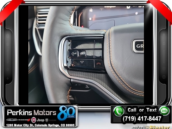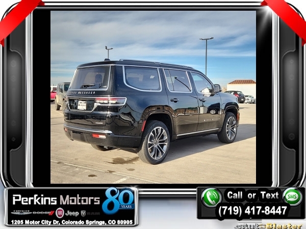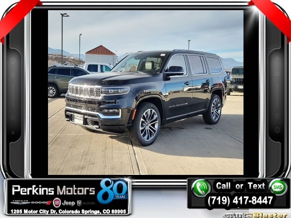 Factory MSRP: $122,540 $14,571 off MSRP! Priced below KBB Fair Purchase Price! Diamond Black Crystal Pearlcoat 2024 Jeep Grand Wagoneer Series III 4WD 8-Speed Automatic 3.0L I6<br><br>Check us out at www.perkinsmotors.com to see our specials! Since opening our doors in 1944, we’ve been proud to serve Colorado Springs, CO, and the surrounding areas of Pueblo, Castle Rock and Denver, CO. Throughout this time of being family owned for 80 years, we’ve maintained a firm commitment to our customers: to offer a wide selection of New Chrysler, Dodge, Fiat, Jeep, and Ram vehicles and quality pre-owned vehicles, and provide a quick, no-hassle car-buying process that ensures everyone drives off the lot satisfied with their purchase.<br><br>HD Trailer Tow Package (Heavy-Duty Engine Cooling, Removable Rear Tow Hook, Trailer Brake Control, and Trailer Hitch Zoom), MOPAR Interior Protection Package (All-Season Floor Mats and Cargo Tray), Quick Order Package 28W, Rear Seat Video Group 1 (Amazon Fire TV Built-In, Seatback Video Screens, and Video USB Port), Two Tone Paint Group, 3.92 Rear Axle Ratio, 3rd row seats: bench, 4-Wheel Disc Brakes, ABS brakes, Adaptive suspension, Adjustable pedals, Air Conditioning, Alloy wheels, AM/FM radio: SiriusXM with 360L, Anti-whiplash front head restraints, Apple CarPlay/Android Auto, Audio memory, Auto High-beam Headlights, Auto-dimming door mirrors, Auto-dimming Rear-View mirror, Auto-leveling suspension, Automatic temperature control, Black Interior Accents, Body Color Roof w/PXJ, Brake assist, Bumpers: body-color, Compass, Cruise Control, Delay-off headlights, Driver door bin, Driver vanity mirror, Driver's Seat Mounted Armrest, Dual front impact airbags, Dual front side impact airbags, Electronic Stability Control, Emergency communication system: Wagoneer Connect, Four wheel independent suspension, Front anti-roll bar, Front Bucket Seats, Front Center Armrest w/Storage, Front dual zone A/C, Front fog lights, Front reading lights, Fully automatic headlights, Garage door transmitter, Genuine wood console insert, Genuine wood dashboard insert, Genuine wood door panel insert, Heads-Up Display, Heated door mirrors, Heated front seats, Heated rear seats, Heated steering wheel, Illuminated entry, Knee airbag, Leather steering wheel, Low tire pressure warning, Memory seat, Navigation System, Night vision lights, Normal Duty Suspension, Occupant sensing airbag, Outside temperature display, Overhead airbag, Overhead console, Panic alarm, Passenger door bin, Passenger seat mounted armrest, Passenger vanity mirror, Pedal memory, Power adjustable front head restraints, Power door mirrors, Power driver seat, Power Liftgate, Power moonroof, Power passenger seat, Power steering, Power windows, Premium Leather Trimmed Bucket Seats, Radio data system, Radio: Uconnect 5 Nav w/12.0 Display, Rain sensing wipers, Rear air conditioning, Rear anti-roll bar, Rear dual zone A/C, Rear reading lights, Rear seat center armrest, Rear window defroster, Rear window wiper, Reclining 3rd row seat, Remote keyless entry, Roof rack, Security system, Speed-sensing steering, Speed-Sensitive Wipers, Split folding rear seat, Steering wheel memory, Steering wheel mounted audio controls, Tachometer, Telescoping steering wheel, Tilt steering wheel, Traction control, Trip computer, Turn signal indicator mirrors, Variably intermittent wipers, Ventilated front seats, Ventilated rear seats, Voltmeter, Wheels: 22 x 9.0 Painted Aluminum, and Wheels: 22 x 9.0 Premium 4 Aluminum.