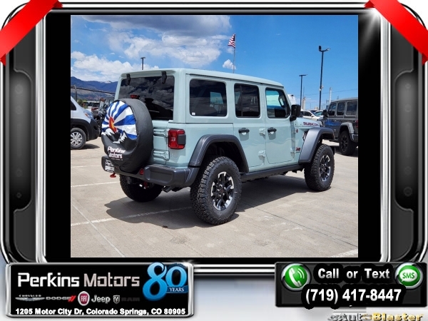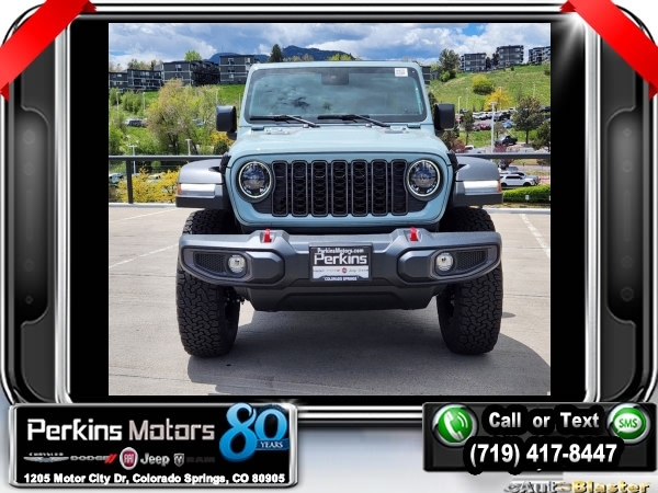 Factory MSRP: $66,730 $6,542 off MSRP! Earl Clearcoat 2024 Jeep Wrangler Rubicon 4WD 8-Speed Automatic 3.6L V6 24V VVT<br><br>Check us out at www.perkinsmotors.com to see our specials! Since opening our doors in 1944, we’ve been proud to serve Colorado Springs, CO, and the surrounding areas of Pueblo, Castle Rock and Denver, CO. Throughout this time of being family owned for 80 years, we’ve maintained a firm commitment to our customers: to offer a wide selection of New Chrysler, Dodge, Fiat, Jeep, and Ram vehicles and quality pre-owned vehicles, and provide a quick, no-hassle car-buying process that ensures everyone drives off the lot satisfied with their purchase.<br><br>Convenience Group (Remote Start System), Quick Order Package 24R Rubicon, 12.3 Touchscreen Display, 4-Wheel Disc Brakes, 4.10 Rear Axle Ratio, 8 Speakers, 97 MPH Vehicle Max Speed Calibration, ABS brakes, Air Conditioning, Alloy wheels, AM/FM radio: SiriusXM, Apple CarPlay, Apple CarPlay/Android Auto, Automatic temperature control, Aux Battery, Brake assist, Cloth Low-Back Bucket Seats, Compass, Connectivity - US/Canada, Cruise Control, Delay-off headlights, Disassociated Touchscreen Display, Driver door bin, Driver vanity mirror, Dual front impact airbags, Dual front side impact airbags, Electronic Stability Control, Front anti-roll bar, Front Bucket Seats, Front Center Armrest w/Storage, Front dual zone A/C, Front fog lights, Front License Plate Bracket, Front reading lights, Fully automatic headlights, Google Android Auto, Heated door mirrors, Illuminated entry, Integrated Center Stack Radio, Integrated roll-over protection, Integrated Voice Command w/Bluetooth, Jeep Trail Rated Kit, Low tire pressure warning, MOPAR All-Weather Floor Mats, Non-Lock Fuel Cap w/o Discriminator, Occupant sensing airbag, Outside temperature display, Overhead airbag, Panic alarm, ParkView Rear Back-Up Camera, Passenger door bin, Passenger vanity mirror, Performance Suspension, Power door mirrors, Power steering, Power Top Quarter Window Storage Bag, Power windows, Radio data system, Radio: Uconnect 5 w/12.3 Display, Rear anti-roll bar, Rear reading lights, Rear Window Defroster, Rear Window Wiper/Washer, Remote keyless entry, Security system, Sky 1-Touch Power Top, Split folding rear seat, Steering wheel mounted audio controls, Stop-Start Dual Battery System, Tachometer, Telescoping steering wheel, Tilt steering wheel, Traction control, Trip computer, Variably intermittent wipers, Voltmeter, Wheels: 17 x 7.5 Machined w/Black Pockets, and Wheels: 17 x 7.5 Machined/Painted Black. Sale price includes all manufacture's incentives and dealer discounts. Sale price not available on lease or compatible with special APR. $2000 - 2024 CJR Bonus Cash 24CRA. Exp. 06/03/2024