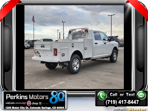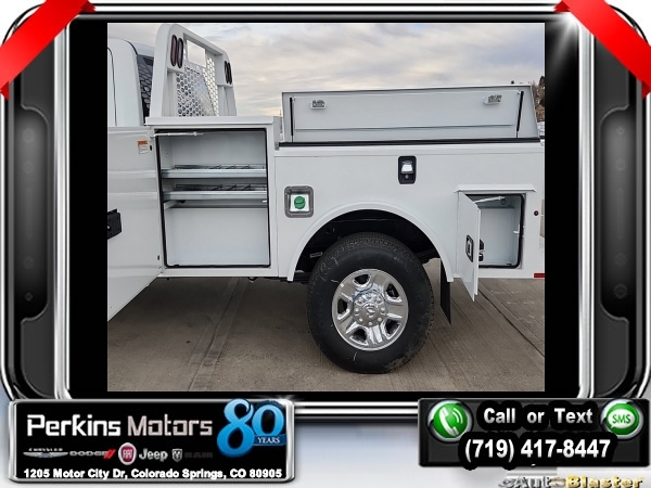 Factory MSRP: $71,440 Bright White Clearcoat 2024 Ram 3500 Tradesman 4WD Aisin 6-Speed Automatic I6<br>knapheide PGTD.<br>Check us out at www.perkinsmotors.com to see our specials! Since opening our doors in 1944, we’ve been proud to serve Colorado Springs, CO, and the surrounding areas of Pueblo, Castle Rock and Denver, CO. Throughout this time of being family owned for 80 years, we’ve maintained a firm commitment to our customers: to offer a wide selection of New Chrysler, Dodge, Fiat, Jeep, and Ram vehicles and quality pre-owned vehicles, and provide a quick, no-hassle car-buying process that ensures everyone drives off the lot satisfied with their purchase.<br><br>Chrome Appearance Group (Bright Front Bumper, Bright Rear Bumper, Center Hub, Chrome Grille Surround, and Matte Black Mesh w/Chrome Grille), Heavy Duty Snow Plow Prep Group (220 Amp Alternator), Protection Group, Quick Order Package 21A Tradesman, Tradesman Level 1 Equipment Group, 2 Way Rear Headrest Seat, 3.73 Axle Ratio, 4 Way Front Headrests, 4-Wheel Disc Brakes, 40/20/40 Split Bench Seat, 6 Speakers, ABS brakes, Active Noise Control System, Air Conditioning, AM/FM radio, Auto Power-Folding Mirrors, Black Exterior Mirrors, Brake assist, Compass, Cruise Control, Dash Pass Thru Wire Circuits, Delay-off headlights, Driver door bin, Dual front impact airbags, Dual front side impact airbags, Electric Shift-On-The-Fly Transfer Case, Electronic Stability Control, Electronically Controlled Throttle, Emergency communication system: SiriusXM Guardian, Exterior Mirrors Courtesy Lamps, Exterior Mirrors w/Heating Element, Exterior Mirrors w/Supplemental Signals, For Details Visit DriveUconnect.com, Forward & Reverse Utility Lights, Front anti-roll bar, Front Armrest w/Cupholders, Front Center Armrest w/Storage, Front License Plate Bracket, Front reading lights, Fully automatic headlights, Global Telematics Box Module (TBM), GPS Antenna Input, HD Vinyl 40/20/40 Split Bench Seat, I/P Mounted Auxiliary Switches, Illuminated entry, Integrated Center Stack Radio, Integrated Voice Command w/Bluetooth, Low tire pressure warning, Manual Adjust 4-Way Driver Seat, Manual Adjust 4-Way Front Passenger Seat, Manual Folding Exterior Mirrors, Manual Telescoping Mirrors, Manufacturer's Statement of Origin, Mirror Running Lights, Occupant sensing airbag, Outside temperature display, Overhead airbag, Overhead console, ParkView Rear Back-Up Camera, Passenger door bin, Passenger vanity mirror, Power Adjust Mirrors, Power Heated Fold Telescopic Mirrors, Power steering, Power Telescoping Mirrors, Power windows, Power-Adjustable Convex Aux Mirrors, Radio data system, Radio: Uconnect 3 w/5 Display, Radio: Uconnect 5 w/8.4 Display, Rear Folding Seat, Rear step bumper, Remote USB Port - Charge Only, SiriusXM Radio Service, Storage Tray, Tachometer, Tilt steering wheel, Tip Start, Traction control, Trailer Brake Control, Trailer Light Check, Variably intermittent wipers, Voltmeter, Wheels: 18 x 8.0 Steel, and Wheels: 18 x 8.0 Steel Chrome ClaD. Price includes $16,995 in dealer added accessories.