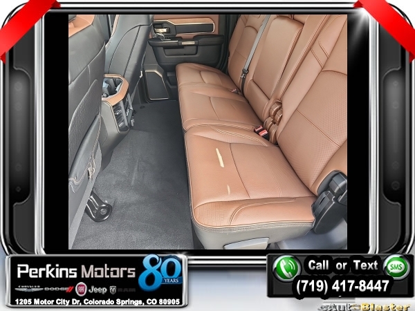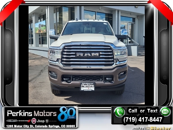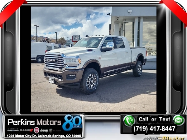 Factory MSRP: $99,925 $8,102 off MSRP! Pearl White 2024 Ram 3500 Laramie Longhorn 4WD Aisin 6-Speed Automatic I6<br><br>Check us out at www.perkinsmotors.com to see our specials! Since opening our doors in 1944, we’ve been proud to serve Colorado Springs, CO, and the surrounding areas of Pueblo, Castle Rock and Denver, CO. Throughout this time of being family owned for 80 years, we’ve maintained a firm commitment to our customers: to offer a wide selection of New Chrysler, Dodge, Fiat, Jeep, and Ram vehicles and quality pre-owned vehicles, and provide a quick, no-hassle car-buying process that ensures everyone drives off the lot satisfied with their purchase.<br><br>Longhorn Level 1 Equipment Group (12 Touchscreen Display, 4G LTE Wi-Fi Hot Spot, Alexa Built-In, Apple CarPlay, Blind Spot & Cross Path Detection, Connected Travel & Traffic Services, Connectivity - US/Canada, Disassociated Touchscreen Display, For Details Visit DriveUconnect.com, For More Info, Call 800-643-2112, Global Telematics Box Module (TBM), Google Android Auto, GPS Antenna Input, GPS Navigation, HD Radio, Integrated Voice Command w/Bluetooth, LED Bed Lighting, MOPAR Spray In Bedliner, Off-Road Information Pages, Power Deployable Running Boards, Ramcharger Wireless Charging Pad, Selectable Tire Fill Alert, SiriusXM Radio Service, SiriusXM w/360L, and Trailer Tow Pages), Protection Group, Quick Order Package 21K Longhorn, Safety Group (Adaptive Cruise Control w/Stop, Adaptive Steering System, Full Speed Forward Collision Warning Plus, and Lane Keep Assist), Snow Chief Group (Auxiliary Switches Prep, Clearance Lamps, Dash Pass Thru Wire Circuits, and I/P Mounted Auxiliary Switches), Towing Technology Group (Center Stop Lamp w/Cargo View Camera, Surround View Camera System, and Trailer Reverse Guidance), 10 Speakers, 115V Auxiliary Rear Power Outlet, 2 Way Rear Headrest Seat, 220 Amp Alternator, 3.73 Axle Ratio, 4 Way Front Headrests, 4-Wheel Disc Brakes, 5th Wheel/Gooseneck Towing Prep Group, ABS brakes, Active Noise Control System, Adjustable pedals, Air Conditioning, Alloy wheels, AM/FM radio: SiriusXM with 360L, Apple CarPlay/Android Auto, Audio memory, Auto High-beam Headlights, Auto Level Rear Air Suspension, Auto-dimming door mirrors, Auto-dimming Rear-View mirror, Automatic temperature control, Brake assist, Bucket Seats, Bumpers: body-color, Center Hub, Compass, Cruise Control, Delay-off headlights, Driver door bin, Driver vanity mirror, Dual Alternators Rated At 440 Amps, Dual front impact airbags, Dual front side impact airbags, Electronic Stability Control, Electronically Controlled Throttle, Front anti-roll bar, Front Bucket Seats, Front Center Armrest w/Storage, Front dual zone A/C, Front fog lights, Front License Plate Bracket, Front reading lights, Front Seat Back Map Pockets, Full Length Premium Upgraded Floor Console, Fully automatic headlights, Garage door transmitter, Genuine wood console insert, Genuine wood dashboard insert, Genuine wood door panel insert, Heated door mirrors, Heated Front Seats, Heated front seats, Heated rear seats, Heated Second Row Seats, Heated Steering Wheel, Heated steering wheel, High Back Seats, Illuminated entry, Leather steering wheel, Low tire pressure warning, Manufacturer's Statement of Origin, Memory seat, MOPAR Deployable Bed Step, MOPAR Front & Rear Rubber Floor Mats, Navigation System, Occupant sensing airbag, Outside temperature display, Overhead airbag, Overhead console, Panic alarm, ParkView Rear Back-Up Camera, Passenger door bin, Passenger vanity mirror, Pedal memory, Power 2-Way Driver Lumbar Adjust, Power 2-Way Passenger Lumbar Adjust, Power 8-Way Adjustable Passenger Seat, Power Adjust 8-Way Driver Seat, Power door mirrors, Power driver seat, Power passenger seat, Power steering, Power Sunroof, Power windows, Premium Filigree Leather Seats, Radio data system, Radio/Driver Seat/Mirrors/Pedals Memory, Rain sensing wipers, Rear 60/40 Folding Seat, Rear reading lights, Rear seat center armrest,