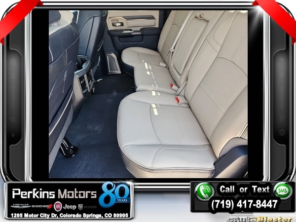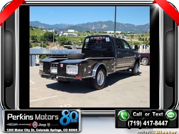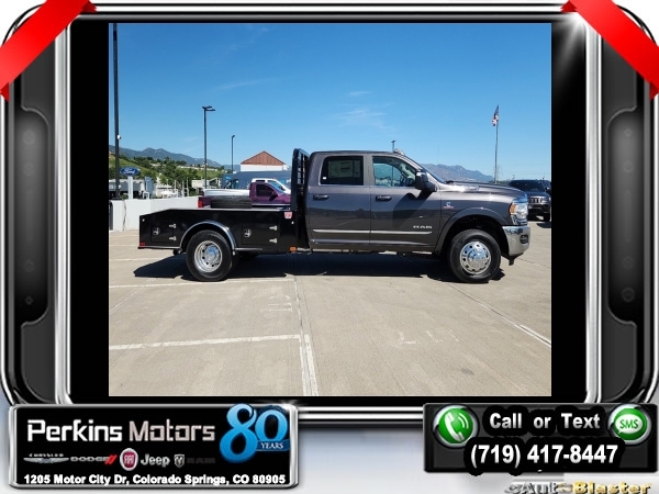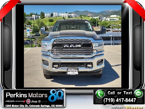 Factory MSRP: $95,825 Granite Crystal Metallic Clearcoat 2023 Ram 3500 Limited 4WD Aisin 6-Speed Automatic Cummins 6.7L I6 Turbodiesel<br>Aerie Camper Van Conversion, ABS brakes, Compass, Electronic Stability Control, Heated door mirrors, Manual Folding Exterior Mirrors, Traction control.<br>Check us out at www.perkinsmotors.com to see our specials! Since opening our doors in 1944, we’ve been proud to serve Colorado Springs, CO, and the surrounding areas of Pueblo, Castle Rock and Denver, CO. Throughout this time of being family owned for 80 years, we’ve maintained a firm commitment to our customers: to offer a wide selection of New Chrysler, Dodge, Fiat, Jeep, and Ram vehicles and quality pre-owned vehicles, and provide a quick, no-hassle car-buying process that ensures everyone drives off the lot satisfied with their purchase.<br><br>ABS brakes, Compass, Electronic Stability Control, Heated door mirrors, Manual Folding Exterior Mirrors, Traction control, 102 mph Maximum Speed, 4-Wheel Disc Brakes, 6 Speakers, Air Conditioning, Black Exterior Mirrors, Center Hub, Cruise Control, Delay-off headlights, Driver door bin, Dual front impact airbags, Emergency communication system: SiriusXM Guardian, For Details, Visit DriveUconnect.com, For More Info, Call 800-643-2112, Front anti-roll bar, Front Bucket Seats, Fully automatic headlights, Global Telematics Box Module (TBM), GPS Antenna Input, HD Vinyl 40/20/40 Split Bench Seat, Integrated Voice Command w/Bluetooth, Manual Adjust 4-Way Driver Seat, Manual Adjust 4-Way Front Passenger Seat, Manual Telescoping Mirrors, Occupant sensing airbag, Outside temperature display, Overhead console, Passenger door bin, Passenger vanity mirror, Power door mirrors, Power steering, Power windows, Radio data system, Radio: Uconnect 3 w/5 Display, Rear anti-roll bar, SiriusXM Radio Service, Tachometer, Temperature & Compass Gauge, Tilt steering wheel, Turn signal indicator mirrors, Variably intermittent wipers, Voltmeter, and Wheels: 18 x 8.0 SteeL. Price includes $14,995 in dealer added accessories.